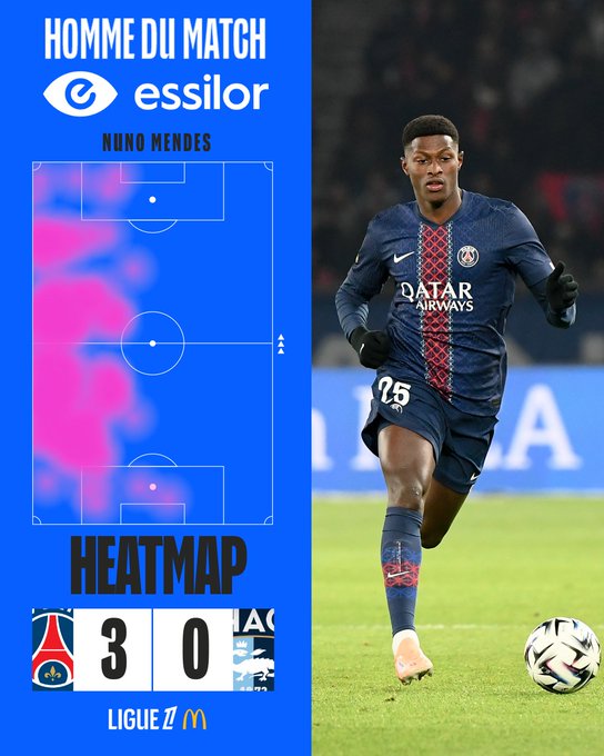 当选本场最佳,门德斯在近8场代表巴黎首发的比赛中参与6球