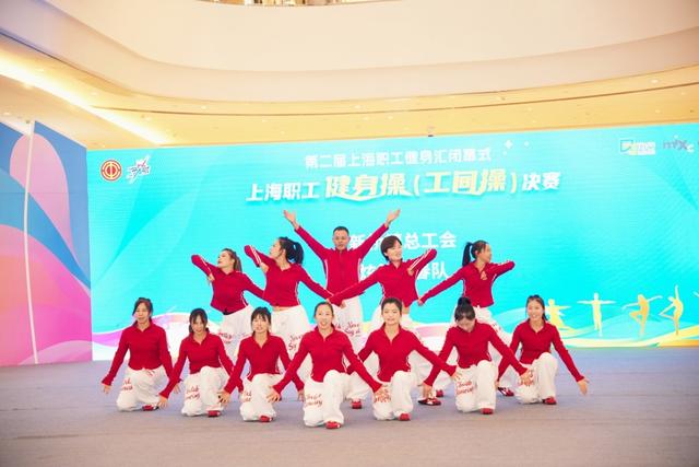 作为健身汇的收官之战,今天举行的职工健身操(工间操)决赛由上海市工人文化宫、闵行区总工会承办,来自全市各区、局(产业)工会的94支队伍历经线上预赛层层筛选,最终40支顶尖队伍、近千名职工站上决赛舞台同台竞技,堪称“高手云集”。