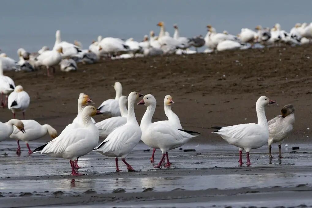 11月8日在加拿大里士满艾奥纳海滩拍摄的雪雁。每年秋季,大批雪雁从北方迁徙至加拿大不列颠哥伦比亚省南部与美国华盛顿州停歇觅食,随后再飞往南方越冬。新华社发(梁森摄)