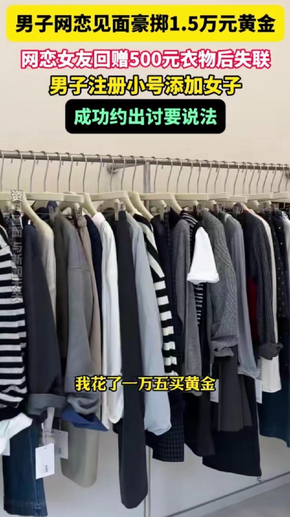 在四川成都,一名男子与女子网恋后初次见面,便花费1.5万为女友购置黄金首饰。不料