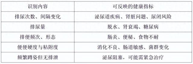 猫砂盆中的排泄行为能够反映多个健康指标,例如: