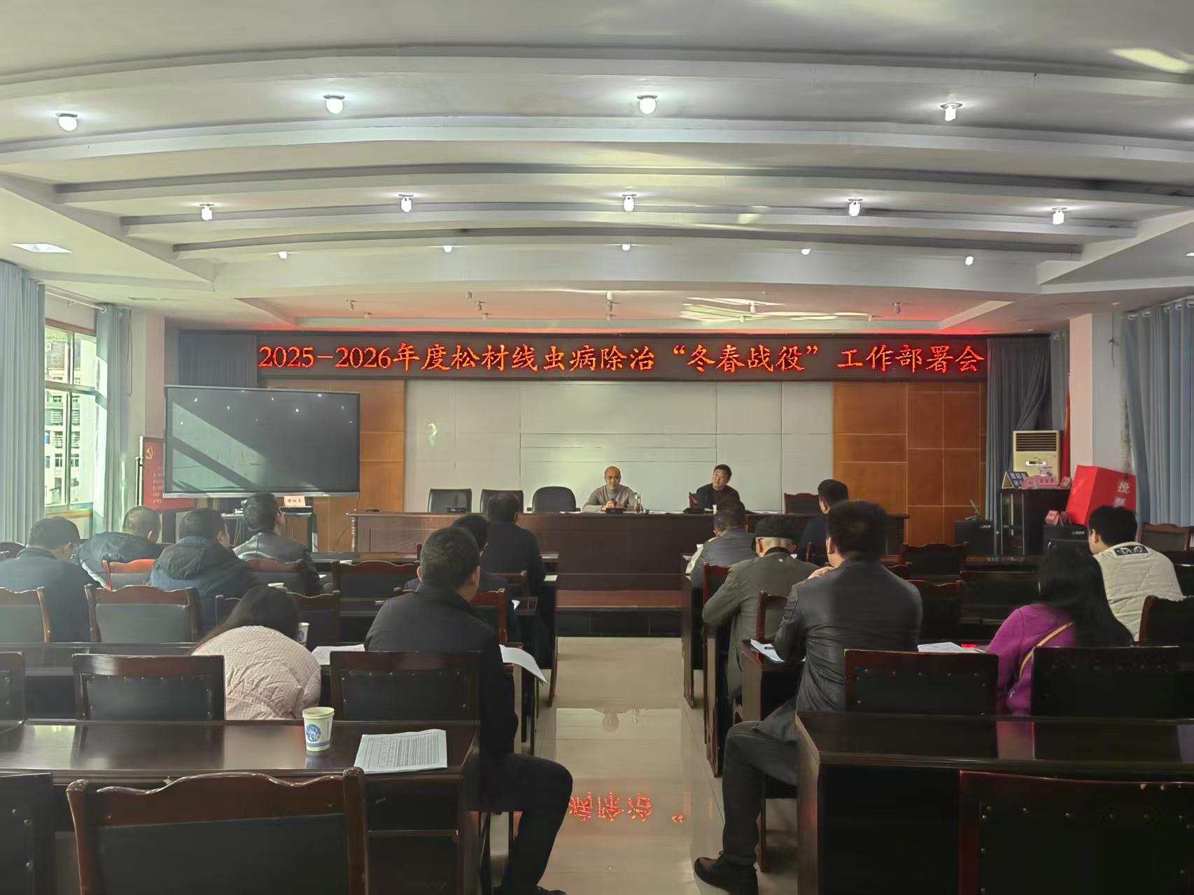 近日,酉阳县召开2025-2026年松材线虫病除治“冬春战役”工作部署专题会。会议专题安排部署酉阳县2025-2026年松材线虫病防控“冬春战役”工作,启动其他灾害死亡集中除治清理,确保酉阳县松材线虫病疫情除治巩固提升及防控工作高质量推进。局分管领导、森林病虫防治检疫站全体工作人员,桃花源街道、钟多街道、麻旺镇、龙潭镇、酉水河镇、酉酬镇、偏柏乡、伏龙山林场分管领导和相关负责人参会。