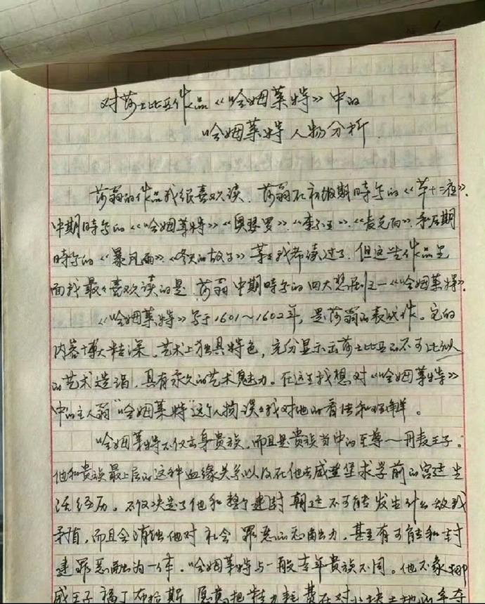 人如其名,字如其人。巩俐这一手字,真的能在字里行间看到她的影子,不仅字写得漂亮,表达能力也很好,专业素养真的很高。 巩俐39年前大学手稿字迹意外曝光,磅礴遒劲的笔锋与银幕气场如出一辙,瞬间点燃全网对“演员修养”的集体追忆。 曝光文件为巩俐1986年中央戏剧学院大一课程作业——对莎士比亚《哈姆雷特》主角的人物分析手稿,全文以钢笔书写,标题为《哈姻莱特人物分析》。字体风格刚劲洒脱,笔画顿挫有力,转折处带锋芒,兼具硬笔书法的骨力与行书的流动感,被多次形容为“遒劲激越、龙凤翱翔”。 手稿与电影《霸王别姬》中“为演菊仙苦练书法三个月”的往事形成互文,被视作“戏比天大”职业精神的实体见证。 对比当下电子化创作,不得不感叹,巩俐老师的字如其人般大气沉稳。