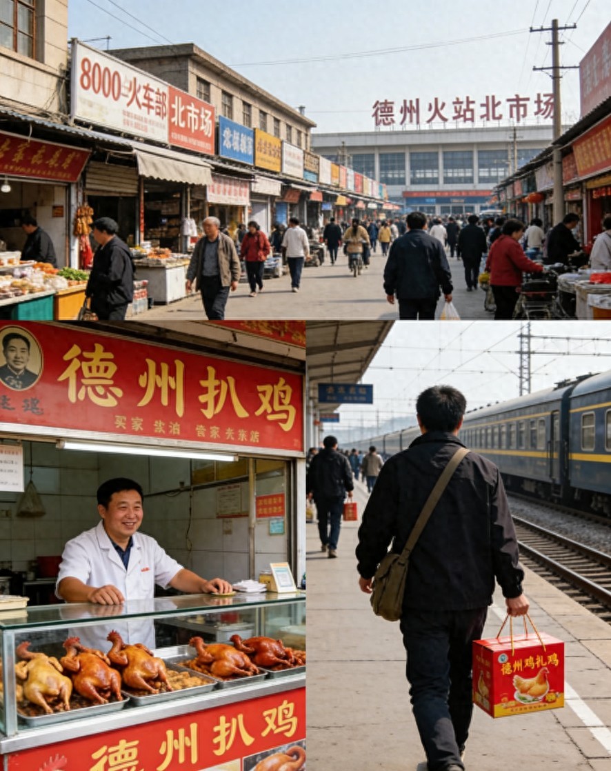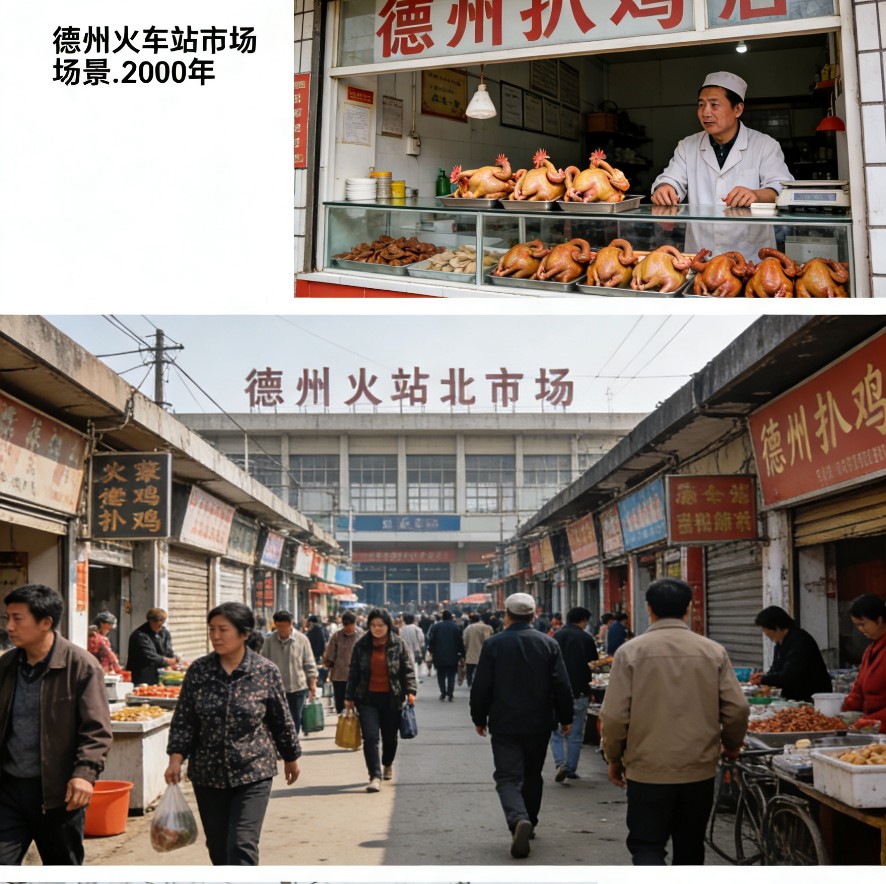 2000年前后,德州火车站北市场人声鼎沸,依托交通枢纽优势,以德州扒鸡为核心,聚集众多商户,成为城市商业地标,见证扒鸡从零散叫卖走向品牌化经营。
