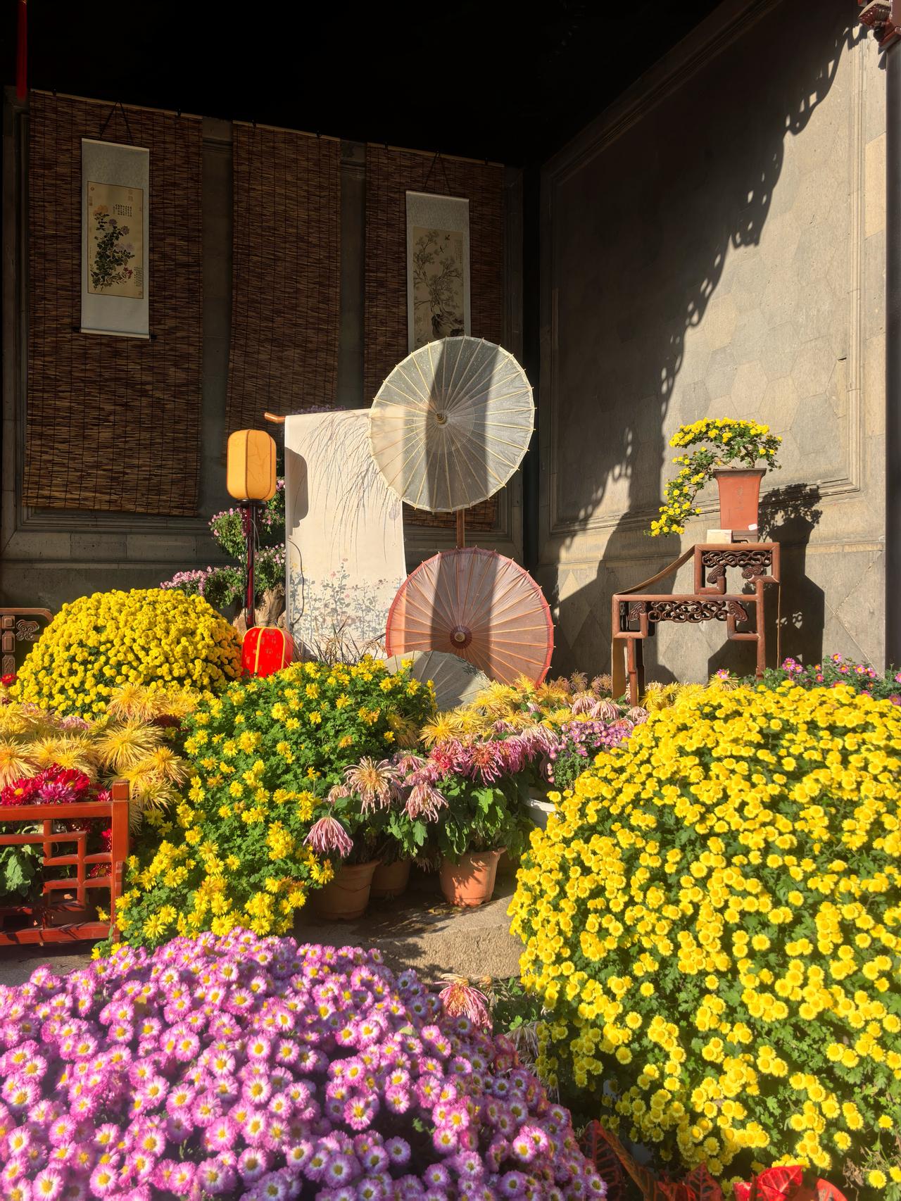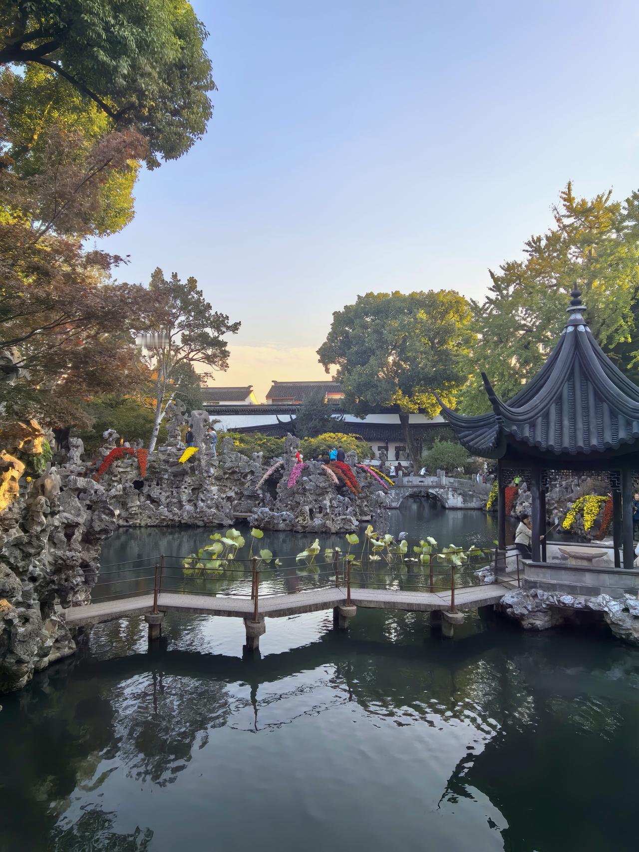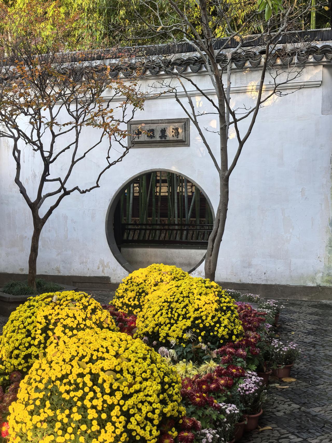 苏州之行第九站:菊影入禅林,狮峰藏秋意——苏博至狮子林漫记。 刚别过苏州博物馆里贝聿铭笔下的几何光影与水墨留白,脚步仍带着江南园林的清雅余韵,便循路左转,踏入东北街的市井烟火。青石板路载着往来游人的足音,两侧白墙黛瓦间偶有秋阳漏下,铺成细碎的金斑,不过片刻,便见园林路的路牌在巷口静立,循着指引前行,十余分钟的光景,便与“禅林假山王国”狮子林撞了个满怀。 入园时,秋阳正好,风里裹着清冽的菊香,瞬时漫入鼻腔。原是恰逢园区菊展,往日里透着古意的庭院,此刻竟成了菊花的盛境——空地上,各色菊株铺展成海,粉白似雪、鹅黄如蜜、绛红若霞,层层叠叠的花瓣或舒展如蝶翼,或卷曲如绒球,引得蜂蝶翩跹其间;厅堂之内,菊影映着雕花窗棂,瓷瓶里斜插着几枝疏菊,与案上的文玩摆件相映,平添几分雅致,就连墙角的石凳旁,也零星点缀着几盆小型菊品,步步皆是景致,处处藏着巧思。 循着菊香深入,便见狮子林的灵魂——假山群巍然矗立。嶙峋的湖石堆叠如群狮盘踞,穴洞宛转,沟壑纵横,阳光穿洞而过,在石面上投下斑驳光影,而石缝间竟也悄然探出几枝野菊,嫩黄的花瓣顶着细碎的露珠,与苍劲的山石相映,刚柔相济,恰如禅意里的阴阳相生。拾级登假山,攀援间偶有豁然开朗,凭栏远眺,满园菊景尽收眼底:白菊衬着灰瓦,黄菊映着碧水,红菊点染着绿树,秋意便在这色彩的交织里愈发浓烈。脚下的山石历经百年风霜,指尖触过之处,皆是岁月的纹路,而身旁的菊花却鲜妍明媚,恰似时光在此刻停驻,古与今、静与动,都融在这一方禅林之中。 穿假山、过曲桥,流水潺潺绕亭台,锦鲤在水中悠游,尾鳍拨起的涟漪里,也映着岸边的菊影。亭下有老者品茗闲谈,孩童在菊丛边追着光斑奔跑,菊香与茶香、笑语与水声交织,酿成最鲜活的江南秋日常。偶有风吹过,菊瓣轻摇,落几片在青瓦上、碧水间,不似飘零的萧瑟,反倒添了几分灵动,仿佛秋光也随这菊影,一同住进了狮子林的每一处角落。 离园时,夕阳已斜,余晖为假山镀上金边,菊香仍在衣间萦绕。从苏博的现代雅韵到狮子林的古意禅心,从几何光影到菊影狮峰,江南的秋,便在这短短一段路程里,铺展成一幅立体的画卷——既有文人墨客的清雅,又有市井人间的鲜活,更有自然草木的深情,让人醉在这秋意里,不愿醒来。原创作品 随手拍狮子林 走进苏州四大园林狮子林 狮子林赏菊 分享游览狮子林感受