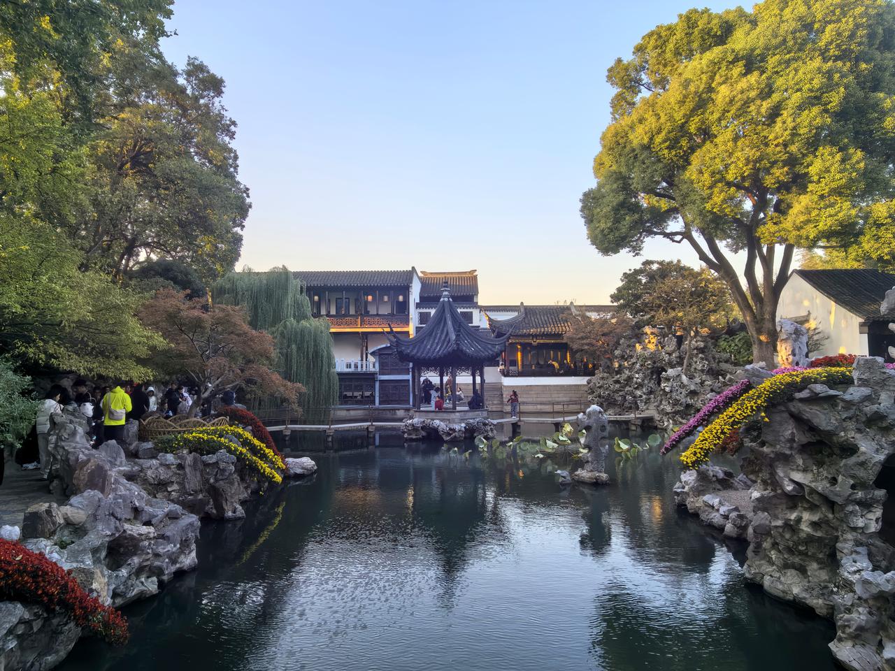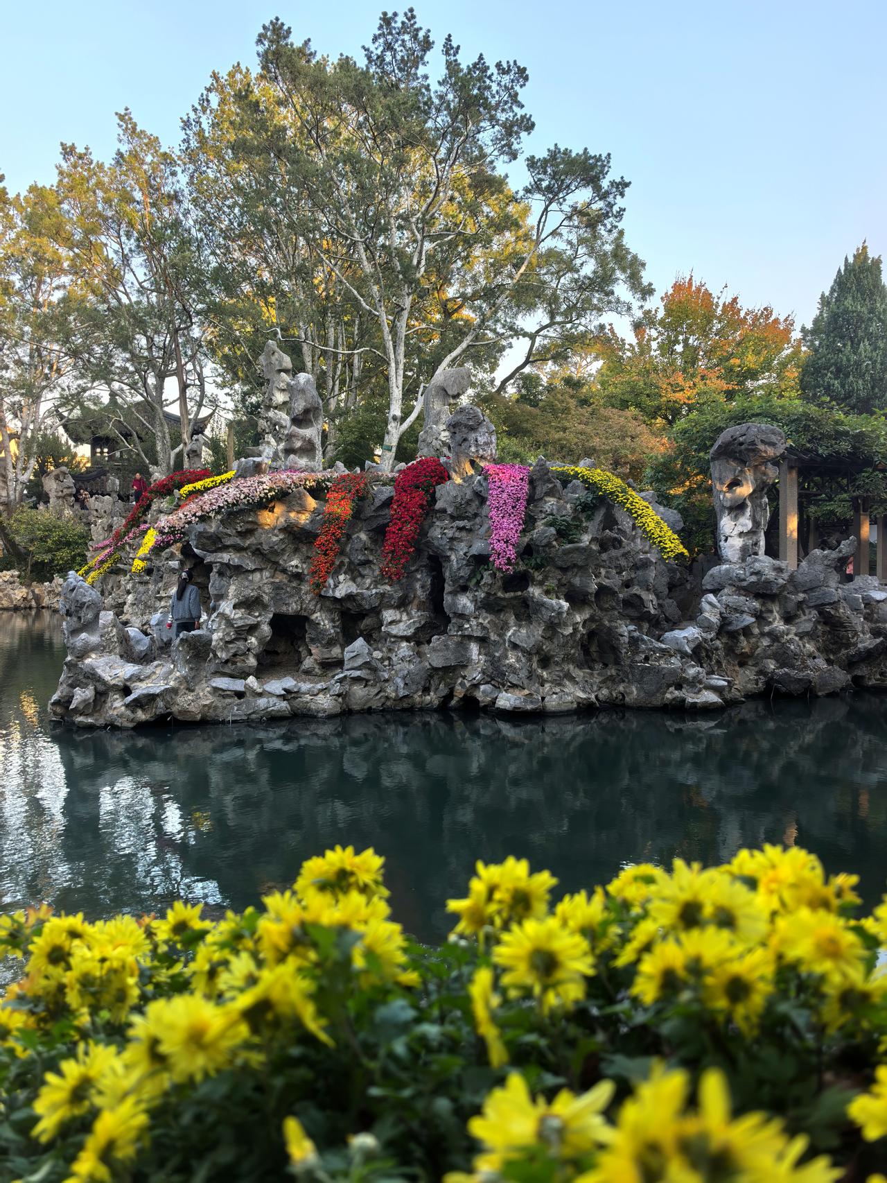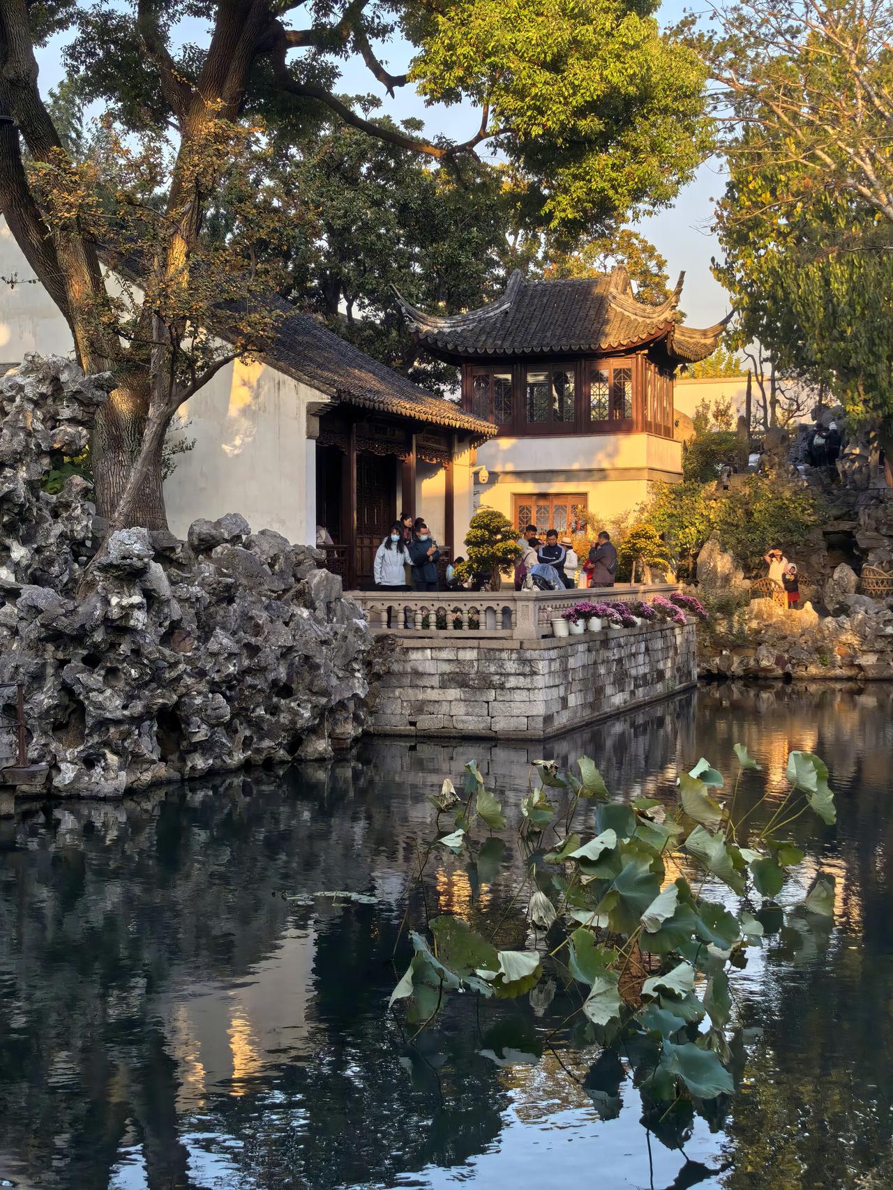 苏州之行第九站:菊影入禅林,狮峰藏秋意——苏博至狮子林漫记。 刚别过苏州博物馆里贝聿铭笔下的几何光影与水墨留白,脚步仍带着江南园林的清雅余韵,便循路左转,踏入东北街的市井烟火。青石板路载着往来游人的足音,两侧白墙黛瓦间偶有秋阳漏下,铺成细碎的金斑,不过片刻,便见园林路的路牌在巷口静立,循着指引前行,十余分钟的光景,便与“禅林假山王国”狮子林撞了个满怀。 入园时,秋阳正好,风里裹着清冽的菊香,瞬时漫入鼻腔。原是恰逢园区菊展,往日里透着古意的庭院,此刻竟成了菊花的盛境——空地上,各色菊株铺展成海,粉白似雪、鹅黄如蜜、绛红若霞,层层叠叠的花瓣或舒展如蝶翼,或卷曲如绒球,引得蜂蝶翩跹其间;厅堂之内,菊影映着雕花窗棂,瓷瓶里斜插着几枝疏菊,与案上的文玩摆件相映,平添几分雅致,就连墙角的石凳旁,也零星点缀着几盆小型菊品,步步皆是景致,处处藏着巧思。 循着菊香深入,便见狮子林的灵魂——假山群巍然矗立。嶙峋的湖石堆叠如群狮盘踞,穴洞宛转,沟壑纵横,阳光穿洞而过,在石面上投下斑驳光影,而石缝间竟也悄然探出几枝野菊,嫩黄的花瓣顶着细碎的露珠,与苍劲的山石相映,刚柔相济,恰如禅意里的阴阳相生。拾级登假山,攀援间偶有豁然开朗,凭栏远眺,满园菊景尽收眼底:白菊衬着灰瓦,黄菊映着碧水,红菊点染着绿树,秋意便在这色彩的交织里愈发浓烈。脚下的山石历经百年风霜,指尖触过之处,皆是岁月的纹路,而身旁的菊花却鲜妍明媚,恰似时光在此刻停驻,古与今、静与动,都融在这一方禅林之中。 穿假山、过曲桥,流水潺潺绕亭台,锦鲤在水中悠游,尾鳍拨起的涟漪里,也映着岸边的菊影。亭下有老者品茗闲谈,孩童在菊丛边追着光斑奔跑,菊香与茶香、笑语与水声交织,酿成最鲜活的江南秋日常。偶有风吹过,菊瓣轻摇,落几片在青瓦上、碧水间,不似飘零的萧瑟,反倒添了几分灵动,仿佛秋光也随这菊影,一同住进了狮子林的每一处角落。 离园时,夕阳已斜,余晖为假山镀上金边,菊香仍在衣间萦绕。从苏博的现代雅韵到狮子林的古意禅心,从几何光影到菊影狮峰,江南的秋,便在这短短一段路程里,铺展成一幅立体的画卷——既有文人墨客的清雅,又有市井人间的鲜活,更有自然草木的深情,让人醉在这秋意里,不愿醒来。原创作品 随手拍狮子林 走进苏州四大园林狮子林 狮子林赏菊 分享游览狮子林感受