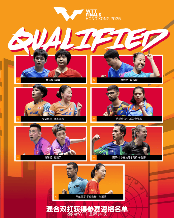 混双名单:林诗栋/蒯曼、林仲勋/申裕斌、松岛辉空/张本美和、玛纳什-沙/迪亚-奇塔莱、黄镇廷/杜凯琹、雨果/高桥-布鲁纳、阿尔瓦罗-罗伯勒斯/肖瑶茜