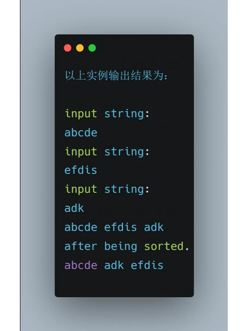 Python经典实例[七R][九R] ~ [一R]题目: 字符串排序。 ~ [二R]程序分析: 无。 ~