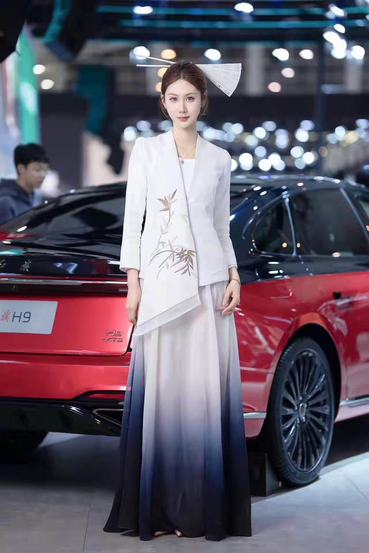 白旗袍绣繁花,银饰簪发添雅致,她将东方的婉约与魅惑揉成一体,每一寸剪裁都在诉说旗