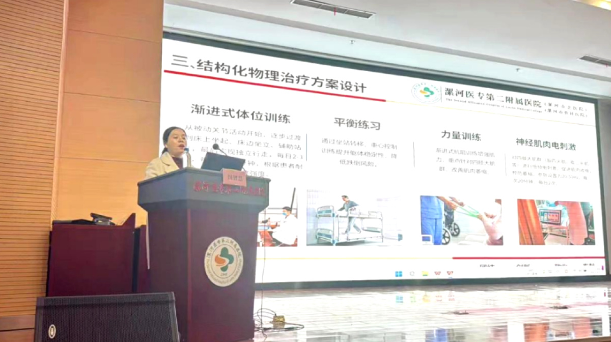 漯河医专二附院康复科护士长田智慧围绕《重症获得性衰弱的早期识别与康复》进行了精彩授课。她强调,在挽救生命的同时,早期且主动的康复干预对于提高患者长期生活质量具有至关重要的作用,这一理念彰显了重症护理从“保命”到“优活”的进步。