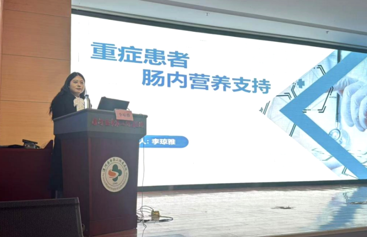 漯河医专二附院重症医学科主管护师李琼雅就《重症患者肠内营养支持》进行了深入讲解。她指出营养是治疗的基础,并系统梳理了营养评估、通路建立、耐受性监测及并发症防治的全流程,确保患者能够获得持续、有效的营养支持。