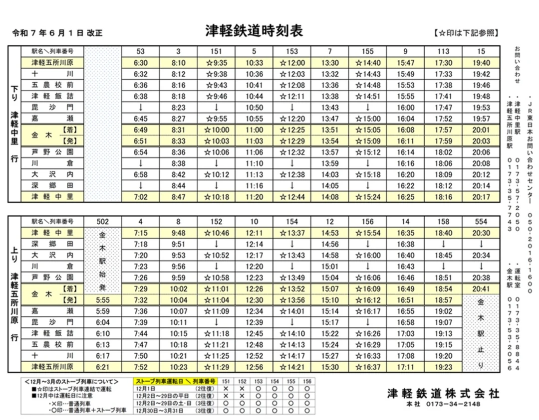 运营时间:每日3趟(见P10,时刻表下方标着圆圈的车号为暖炉列车,其他为普通列车。)