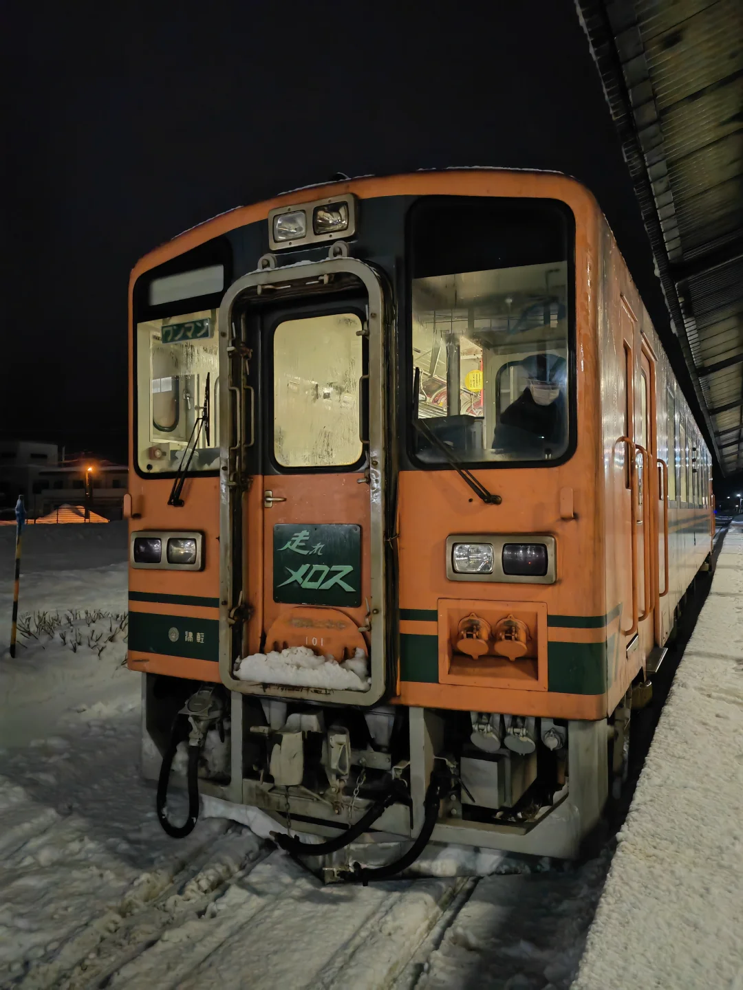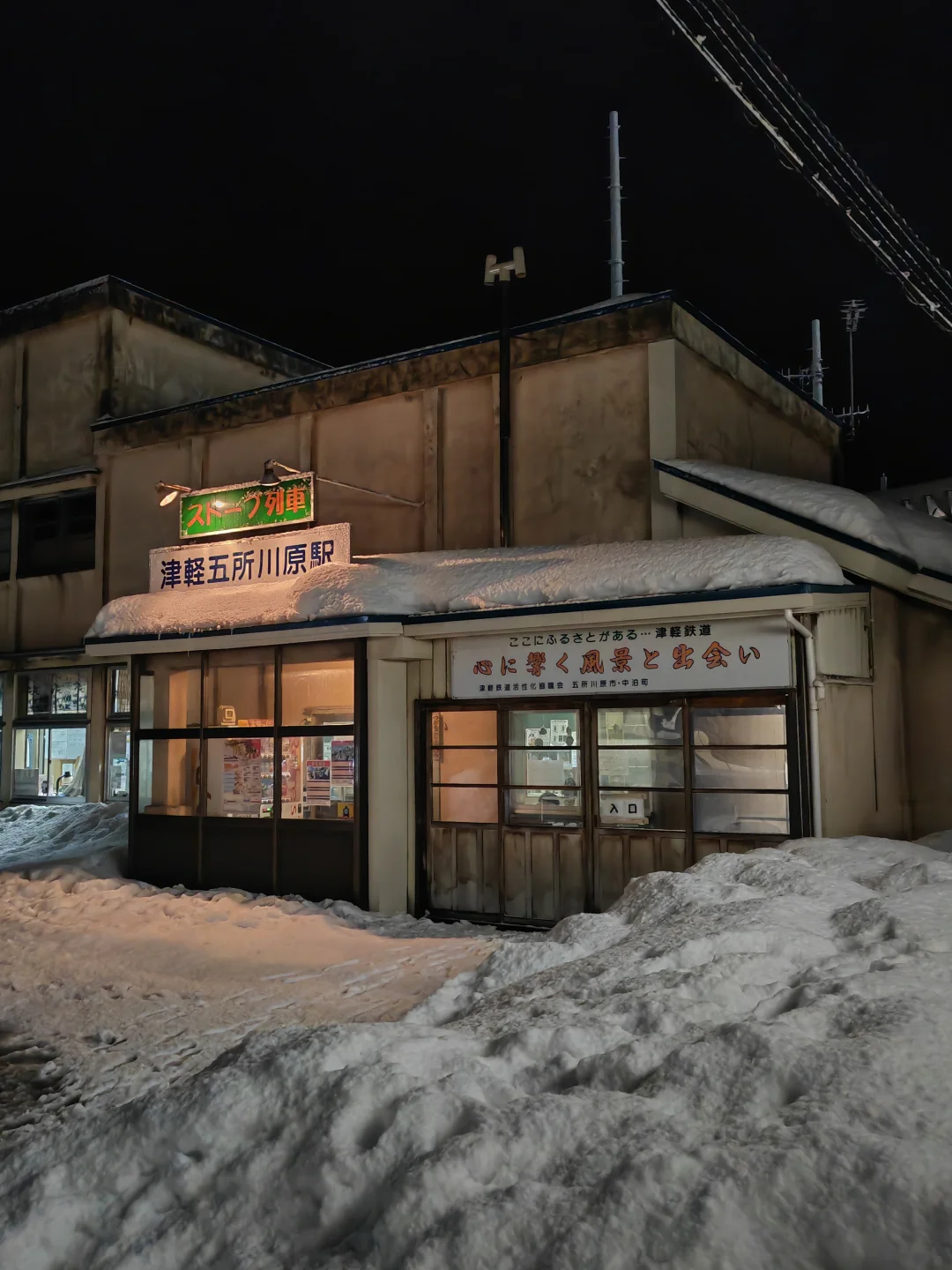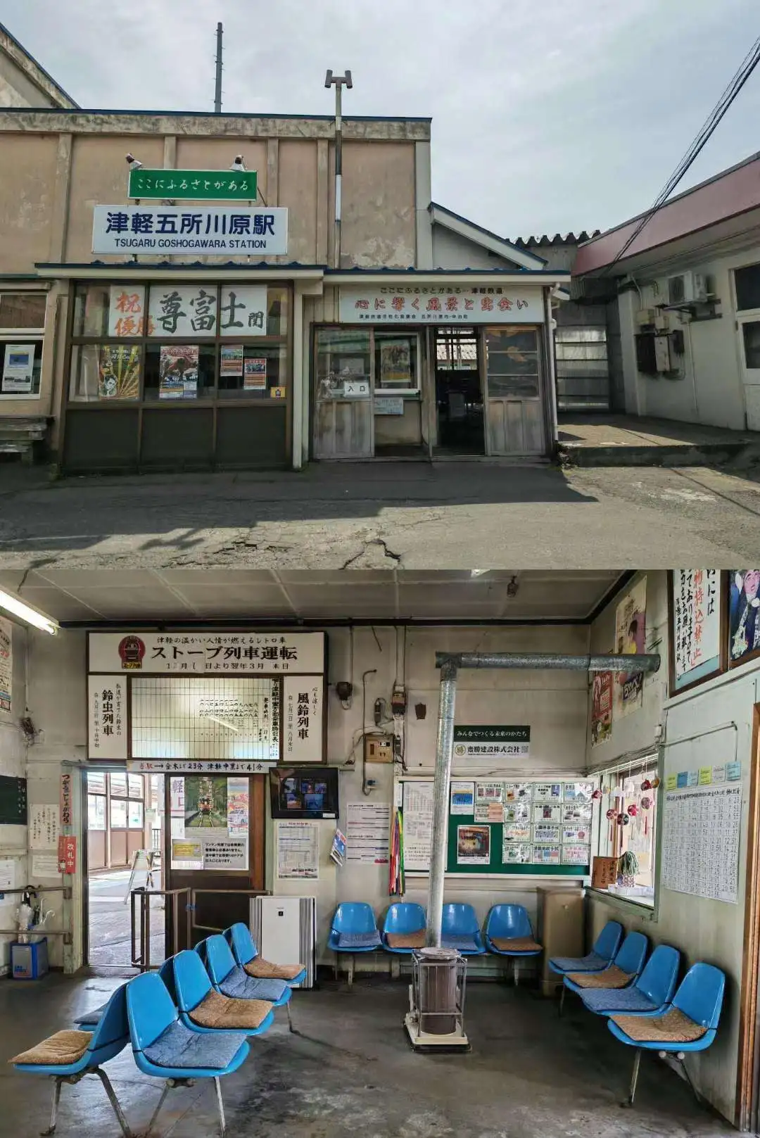 而起点站五所川原车站本身也超复古,像极了《秒速五厘米》里的主人公在雪夜重逢的那幕。