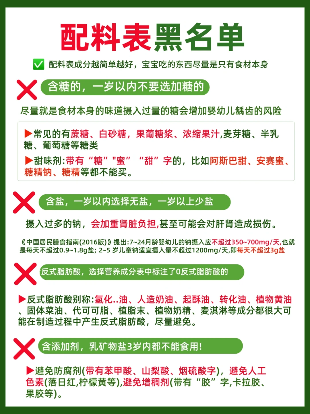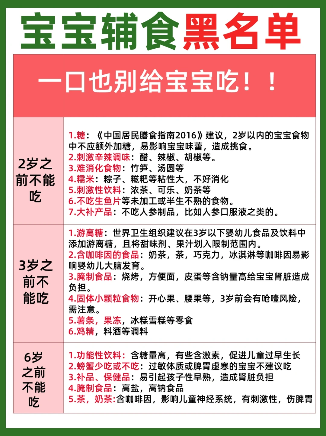 🙋给宝宝添加辅食前一定要注意‼️有的食物不适合一岁以内的宝宝吃! 今天给大家再整理复盘一下吃辅食的一些弯误区,辅食相克表,配料表黑名单,以及一岁内能吃哪些食物,🉑️打印出来,希望能帮到大家❤️