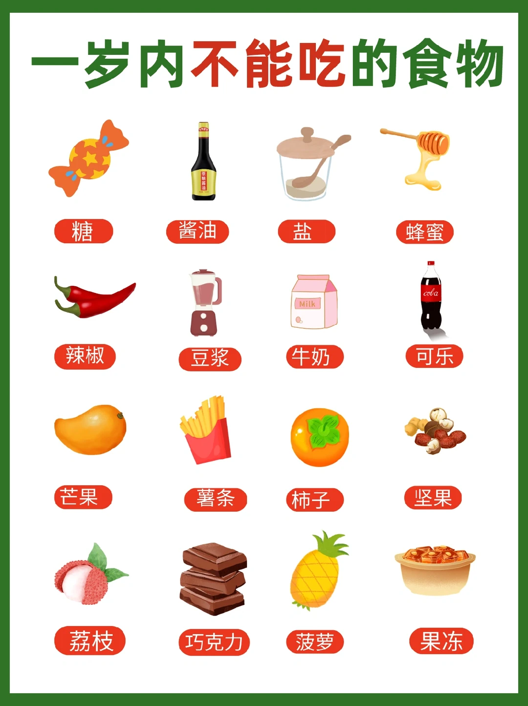 ⚠️调味品:❌盐❌糖❌味精❌酱油❌蜂蜜(可能含肉毒杆菌毒素)