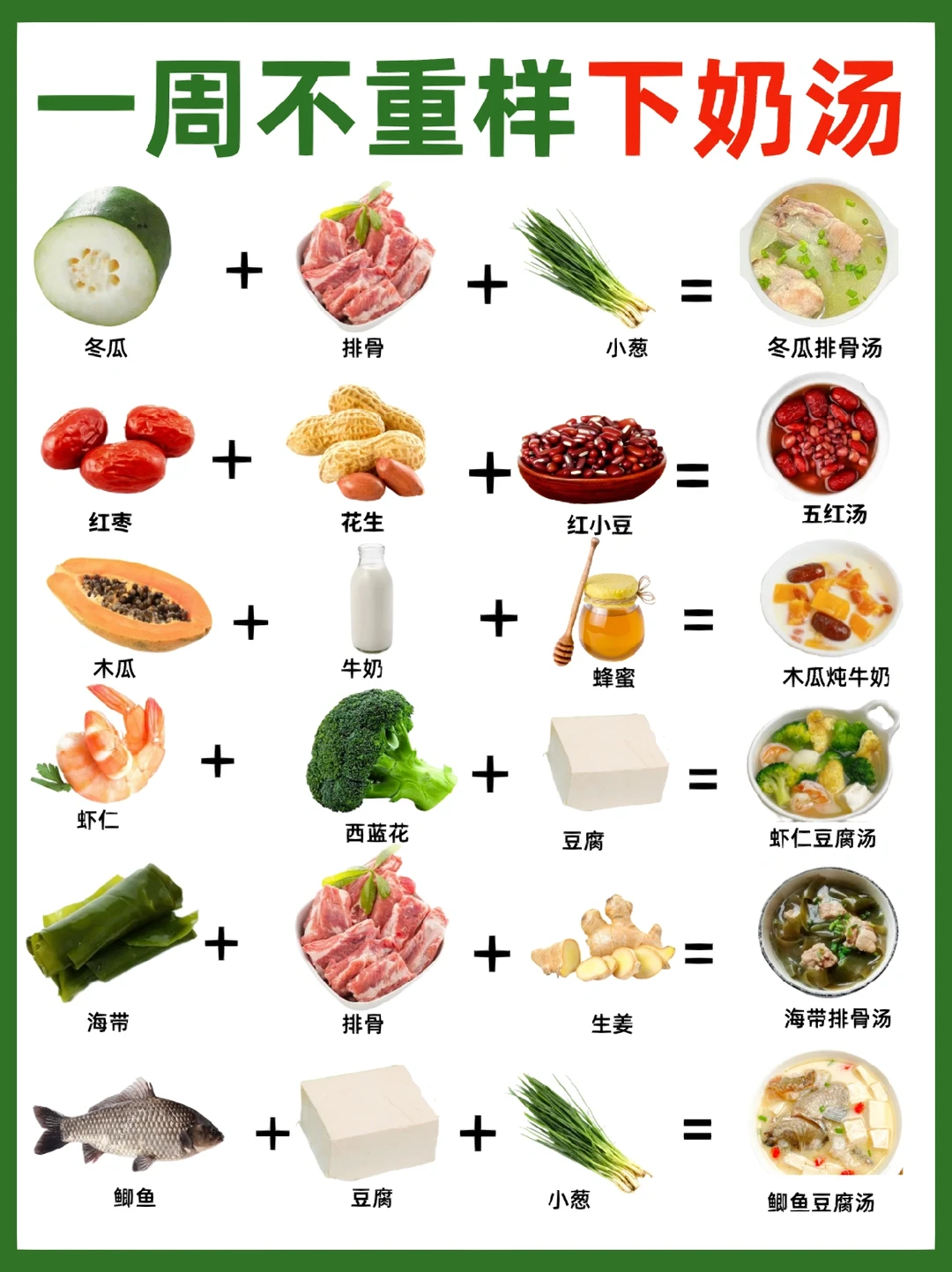🌈首先,哺乳期喝的下奶汤,具体食谱如图