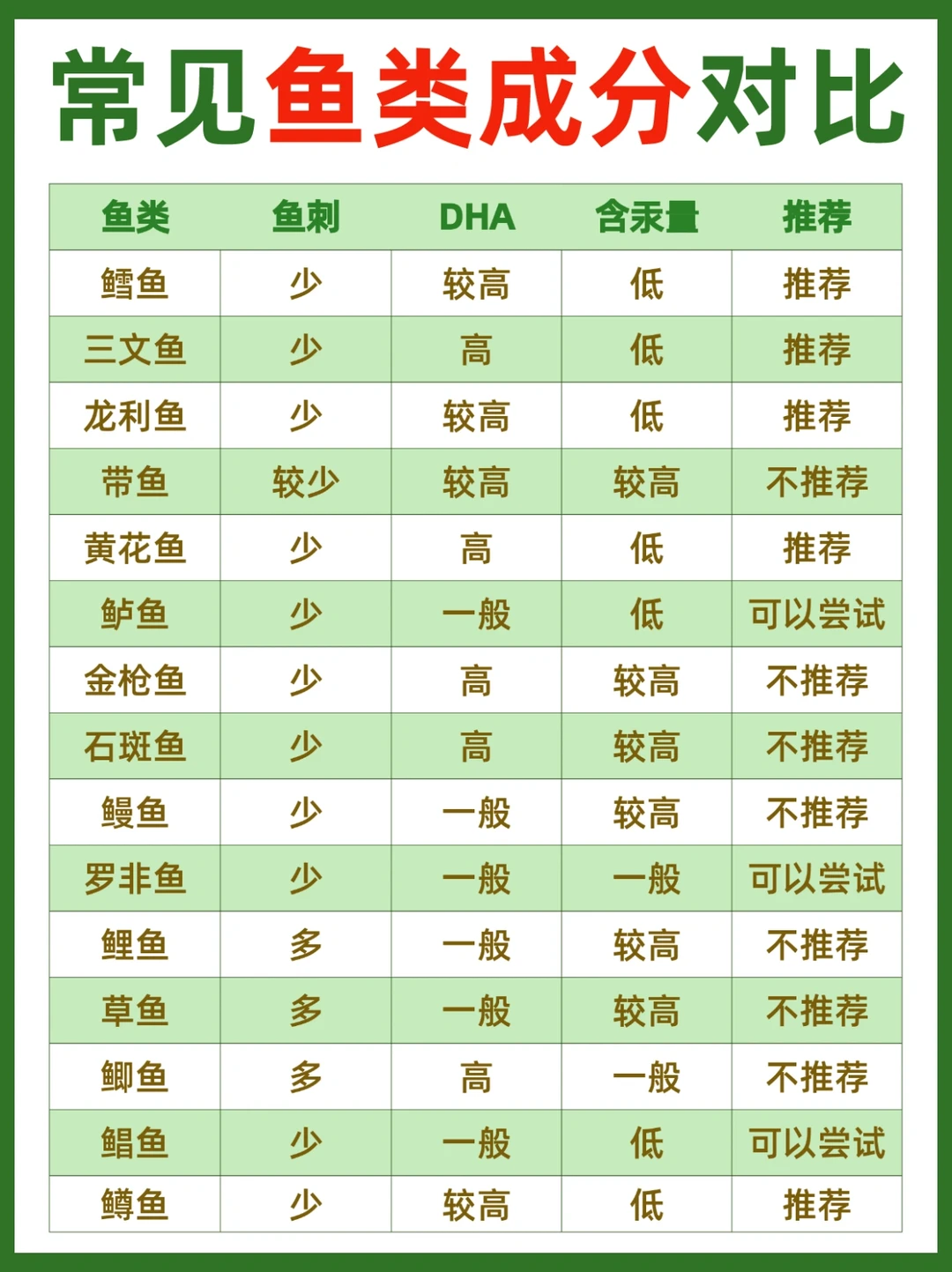 🔴常见鱼类成分对比表以及哪种鱼适合补DHA具体如图。