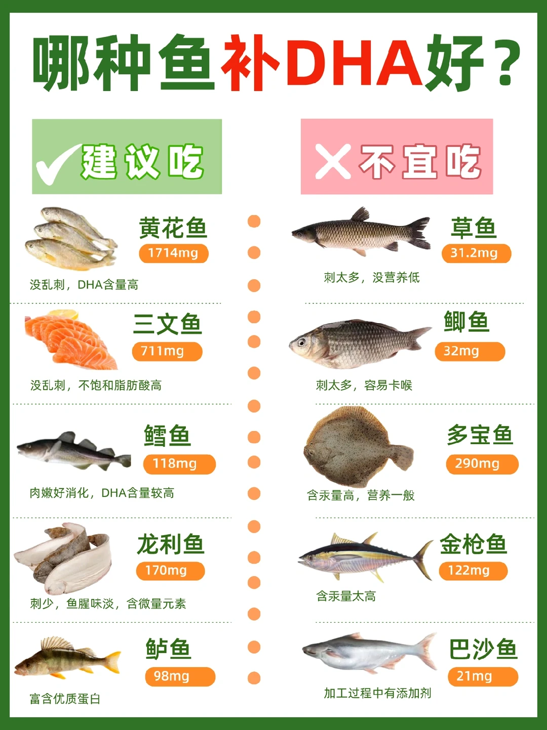 🔴宝宝吃哪些鱼能补充DHA?鱼别乱吃‼️