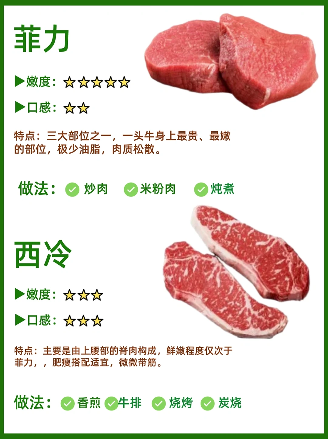 🥩里脊:牛里脊上的肉,是牛肉的最嫩的部分。