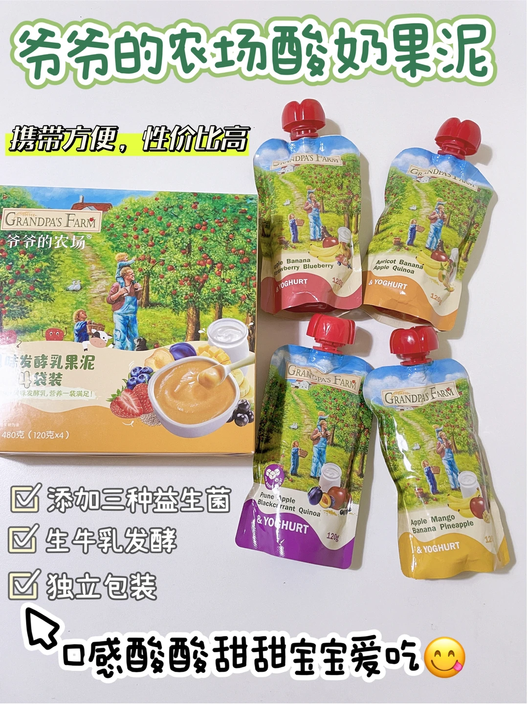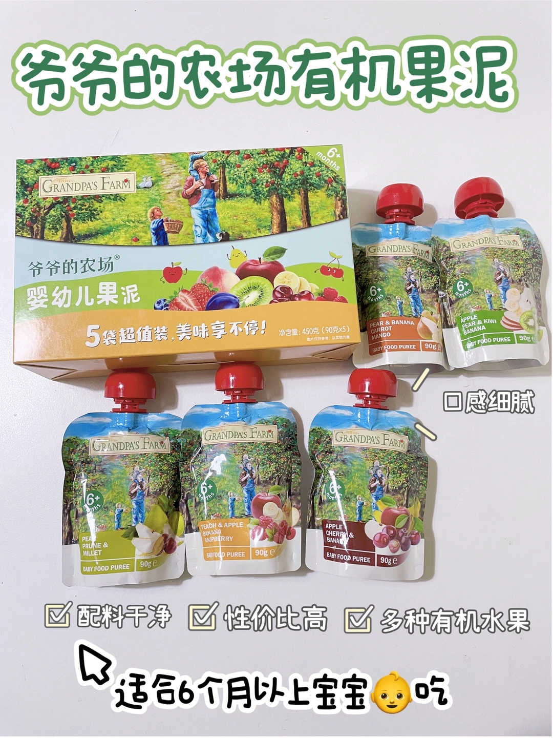 🙋♀️我家也是选了好久,选了爷爷的农场果泥,6个月以上就可以吃了,宝宝刚开始吃有机果泥,配料表干净,只有多种有机水果配搭,口感上细腻顺滑,宝宝爱吃。吃了一段时间又入了酸奶果泥,生牛乳发酵,添加三种益生菌,口感酸酸甜甜,性价比很高,都是小袋独立装,出门也可以直接塞包里很方便。想要省事的妈妈真的🉑️不愧是大品牌,辅食我家只选爷爷的农场。