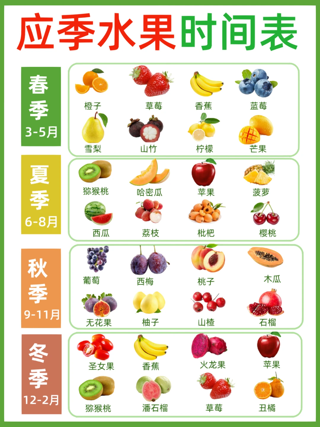👉应季水果表和水果属性分类可以看图片自行保存哦!