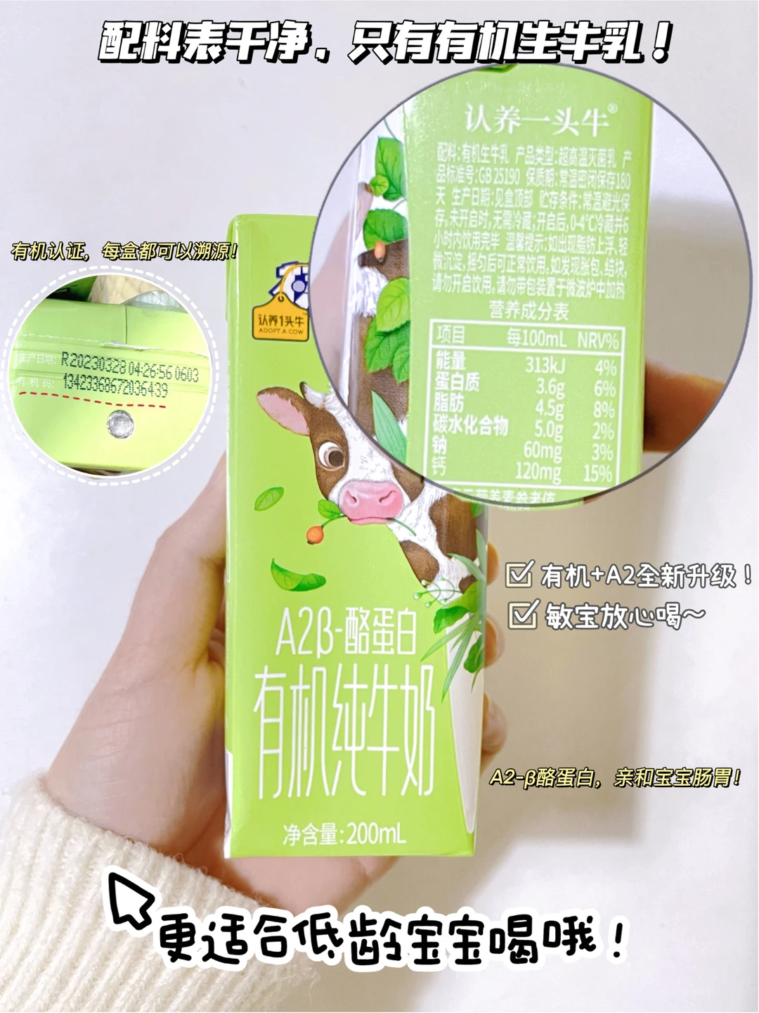 🔶一份健康营养的早餐里,首先应该有乳制品🥛,可以给孩子提供优质的蛋白质和丰富的钙质,我家宝宝最近一直在喝认养一头牛的儿童牛奶,配料表很干净,只有有机生牛乳,每一瓶奶上还有有机的溯源码~ 宝宝喝超放心!