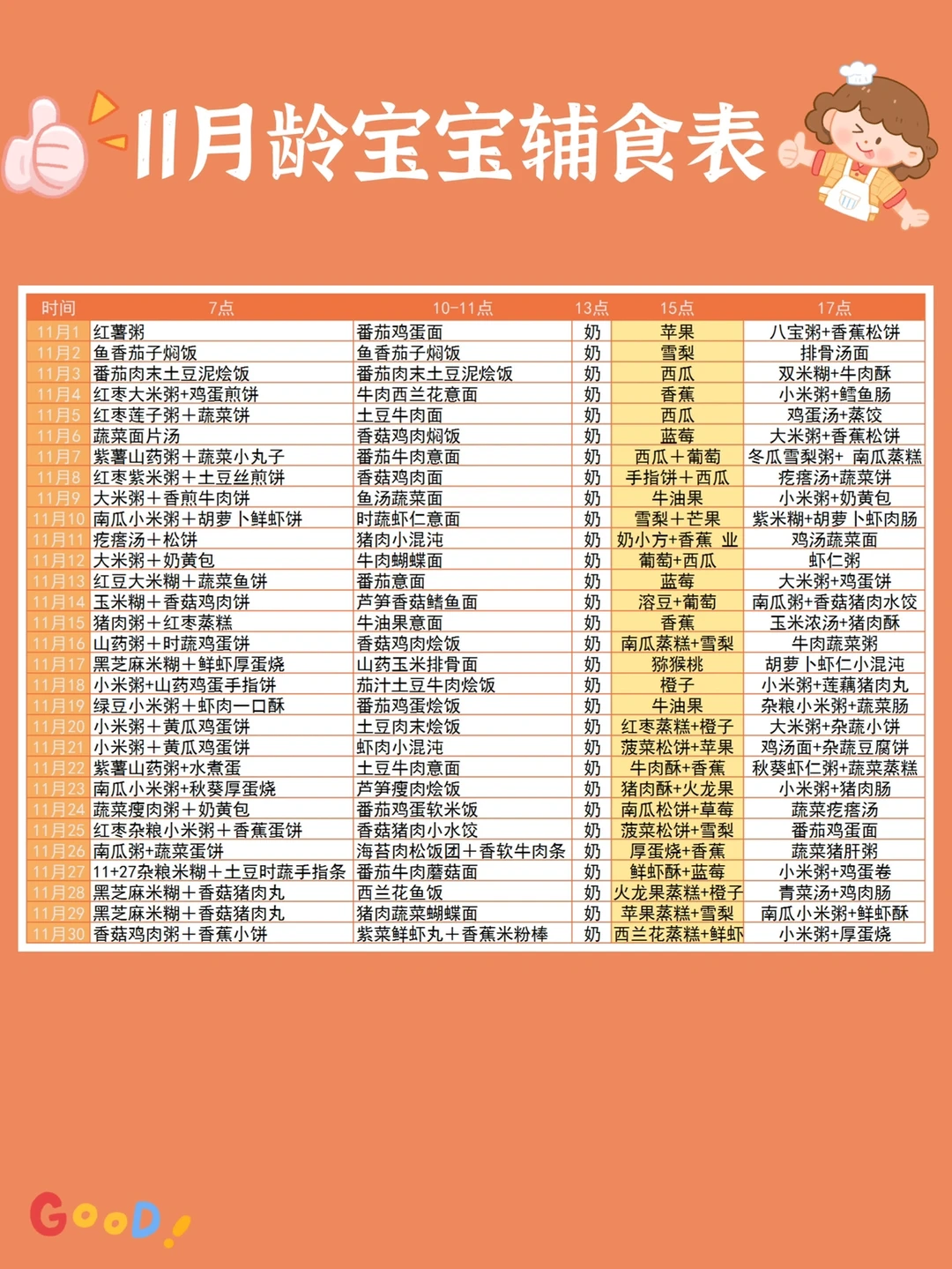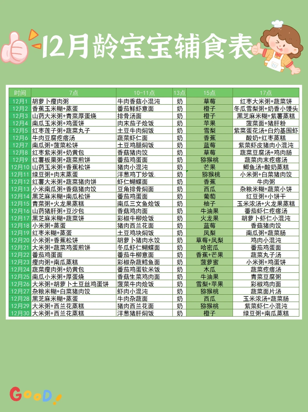 今天整理一份6~12月龄宝宝辅食表,💁🏻♀新手妈妈们可以打印出来参考一下,不一定需要完全一样,🉑根据宝宝实际情况来决定哦!