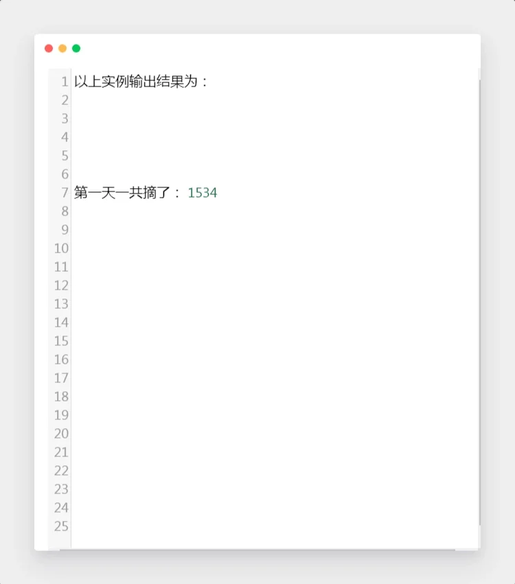 Python经典实例2⃣1⃣ ~ ⭐️题目: 猴子吃桃问题:猴子第一天摘下若干个桃子,当即吃了一半,还不瘾,又多吃了一个第二天早上又将剩下的桃子吃掉一半,又多吃了一个。以后每天早上都吃了前一天剩下的一半零一个。到第10天早上想再吃时,见只剩下一个桃子了。 求第一天共摘了多少。 ~ 🌟程序分析: 采取逆向思维的方法,从后往前推断。 ~ ❗️❗️❗️本题虽然看着题目难,但是确能用几行代码就能解决这个问题✅用最简单的程序解决最难的问题 ~