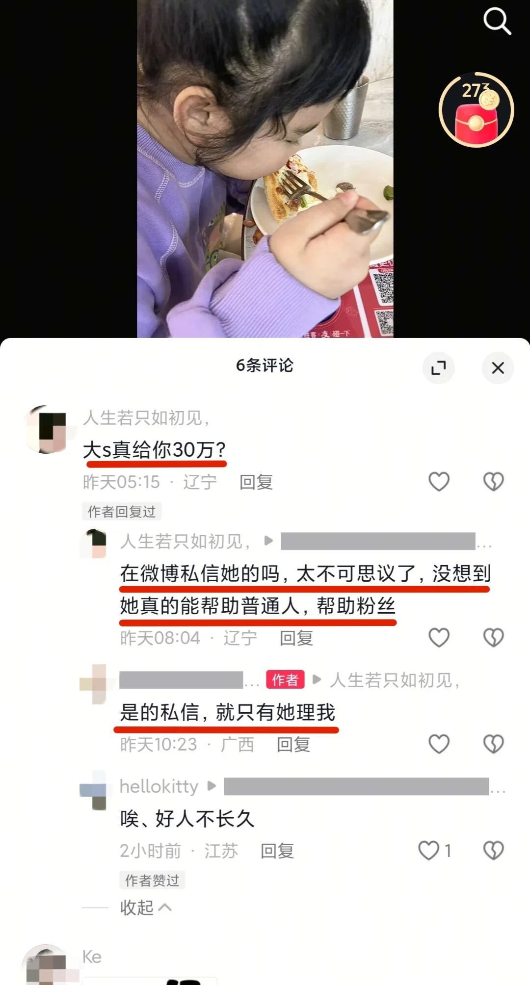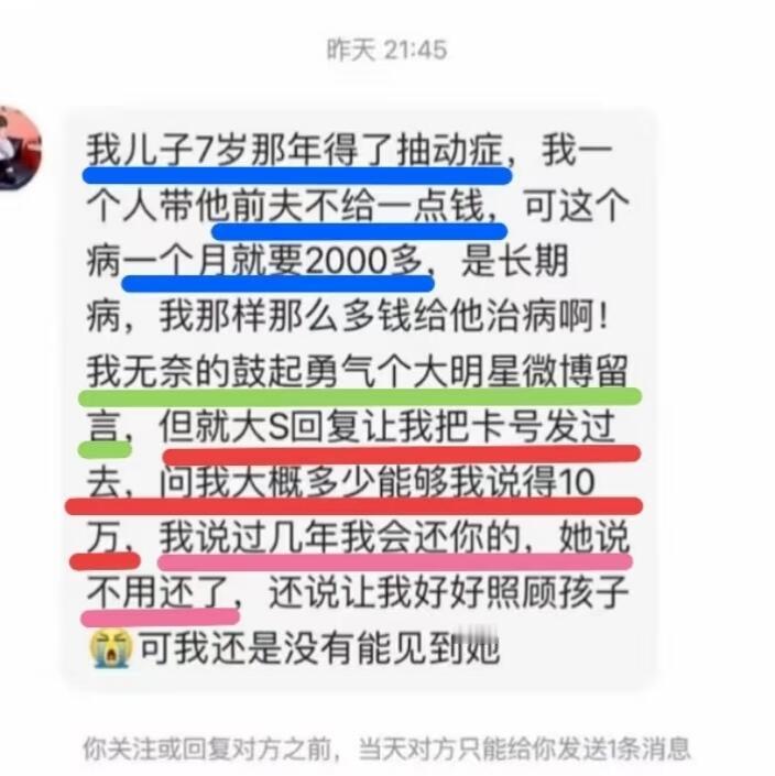 只有大S理我同为母亲,大s或许感同身受吧!!!大S 你私下到底做了多少好事?一个私信30w希望接受过大S帮助的人能够积极的站出来。发帖讲述事实。