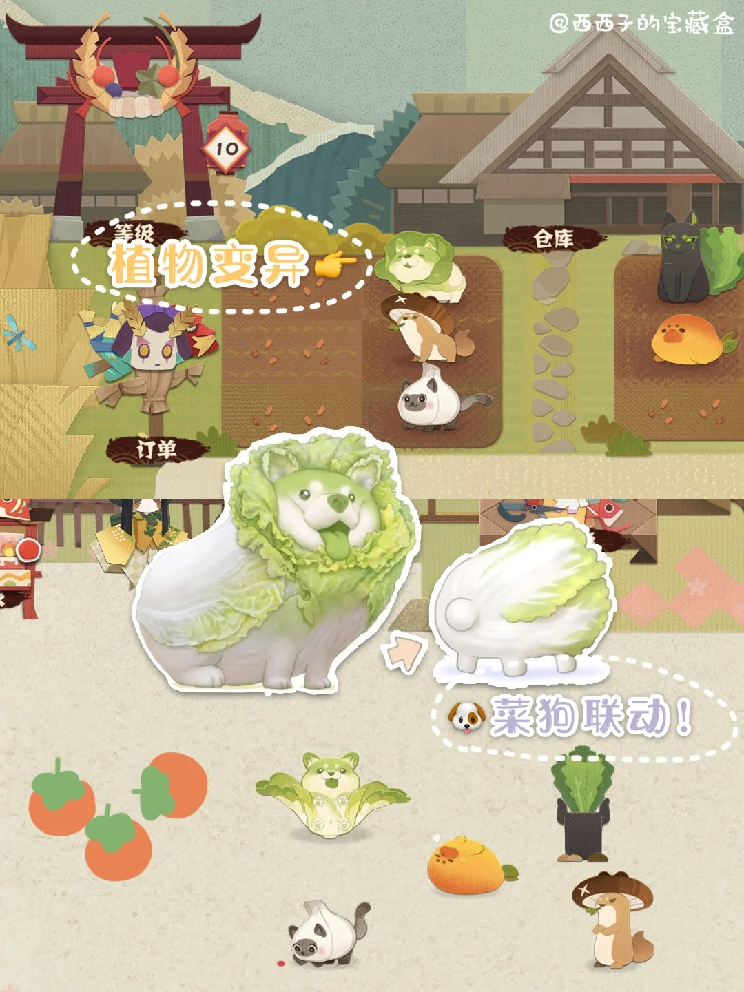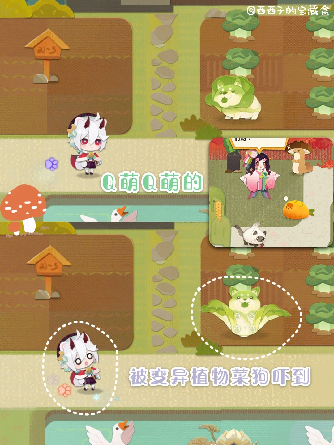 🎈种田玩法这里也敲级有趣,寻常的种田游戏都是播种🌱植物,但是这里的植物是会变异的,变异的植物会长出菜狗,蔬菜和动物的结合体,🐶菜狗可以用来做庭院装饰,就是看着有点丑萌丑萌的,🤣哈哈hhh~