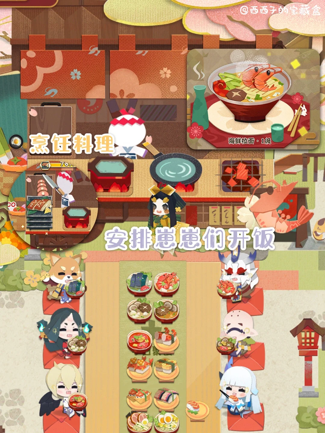 而这些小妖怪的诞生需要我们去抽卡剪纸,可以自己动手剪出可爱的小妖怪哦,还可以给小妖怪们换好看的👗衣服,然后需要动手制作🍣料理,给小妖怪们做食物,让小妖怪们去打工,🎣钓鱼,伐木~