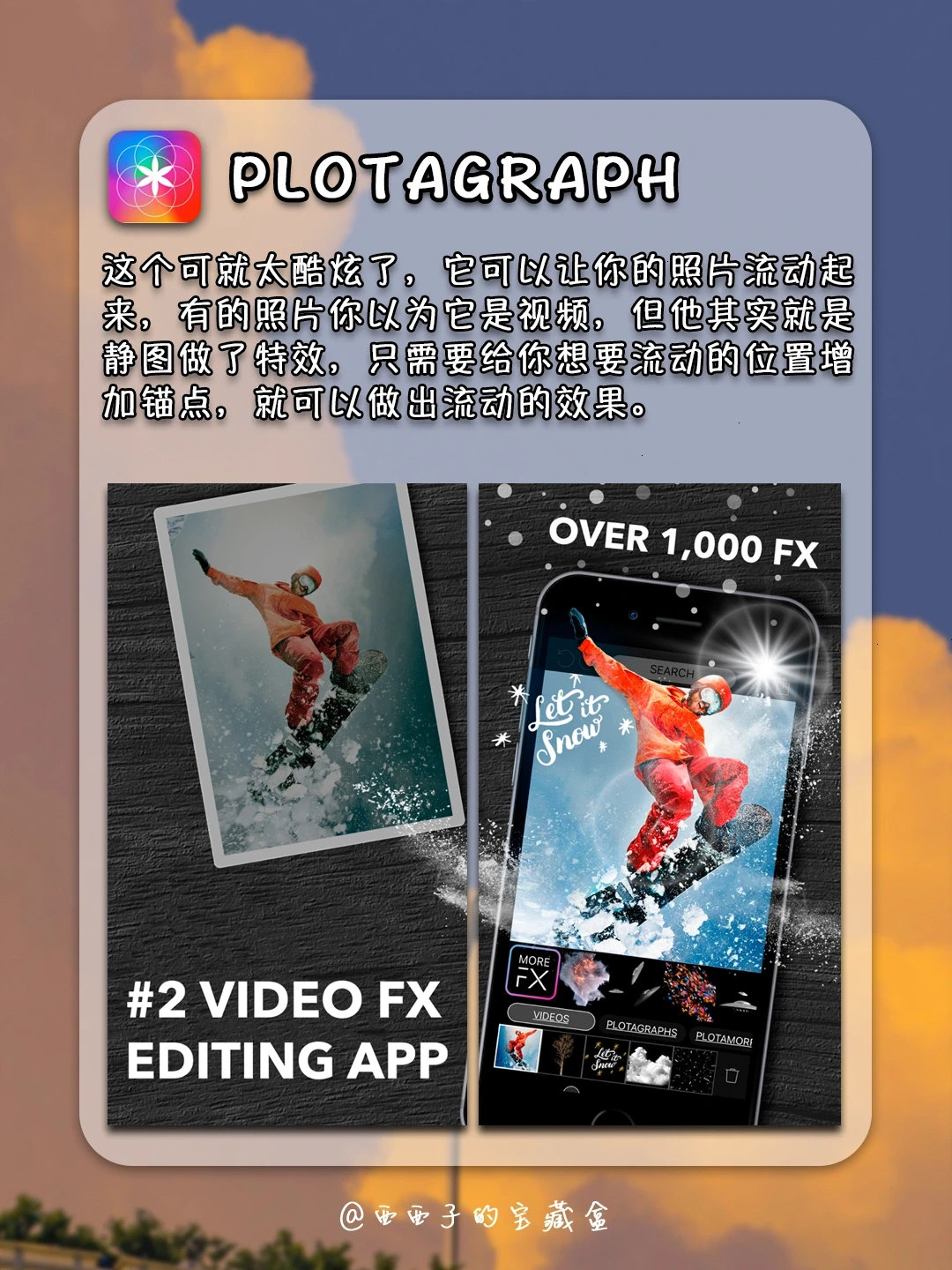 [飞吻R]她来了她来了…… [斜眼R]她带着好用的APP来了 · PLOTAGRAPH丨让照片流动起来 · 转转|闲置处理 · 简讯丨极简知识点 · 桌面小组件丨桌面美化 · 堆糖丨壁纸头像 · Folioscope:Animation丨制作小动画 . 给未来写封信丨寄给未来自己的一封信 . 西西子总会发现宝藏APP:有趣,有料,有价值。