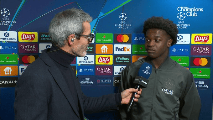 “说实话,我并不感到意外(首发),但我一直很期待首发。这表明教练看到了我在训练中的努力,所以我非常高兴能够首发。在场上,我只是努力回报教练给予我的信任。”这位年轻的巴黎青训说道,这是他首次在欧冠联赛中首发。