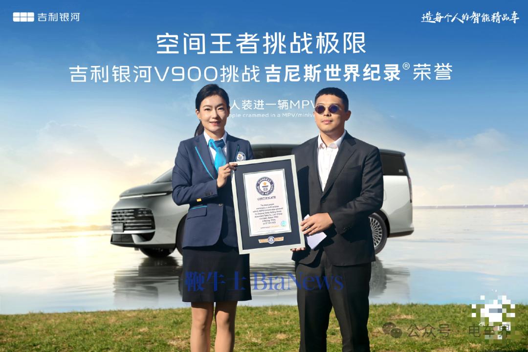 据悉,吉利银河V900凭借“单台MPV载客人数最多”的成绩获得吉尼斯世界纪录认证。