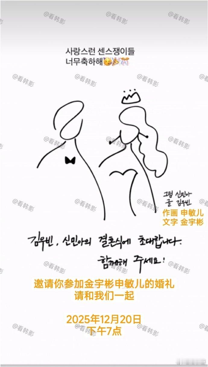 金宇彬申敏儿婚礼请帖 甜炸了!金宇彬申敏儿开始发放婚礼请帖,特别的是请帖由申敏儿作画、金宇彬书写,两人用各自擅长的方式共同制作,这份心意太甜蜜了!
