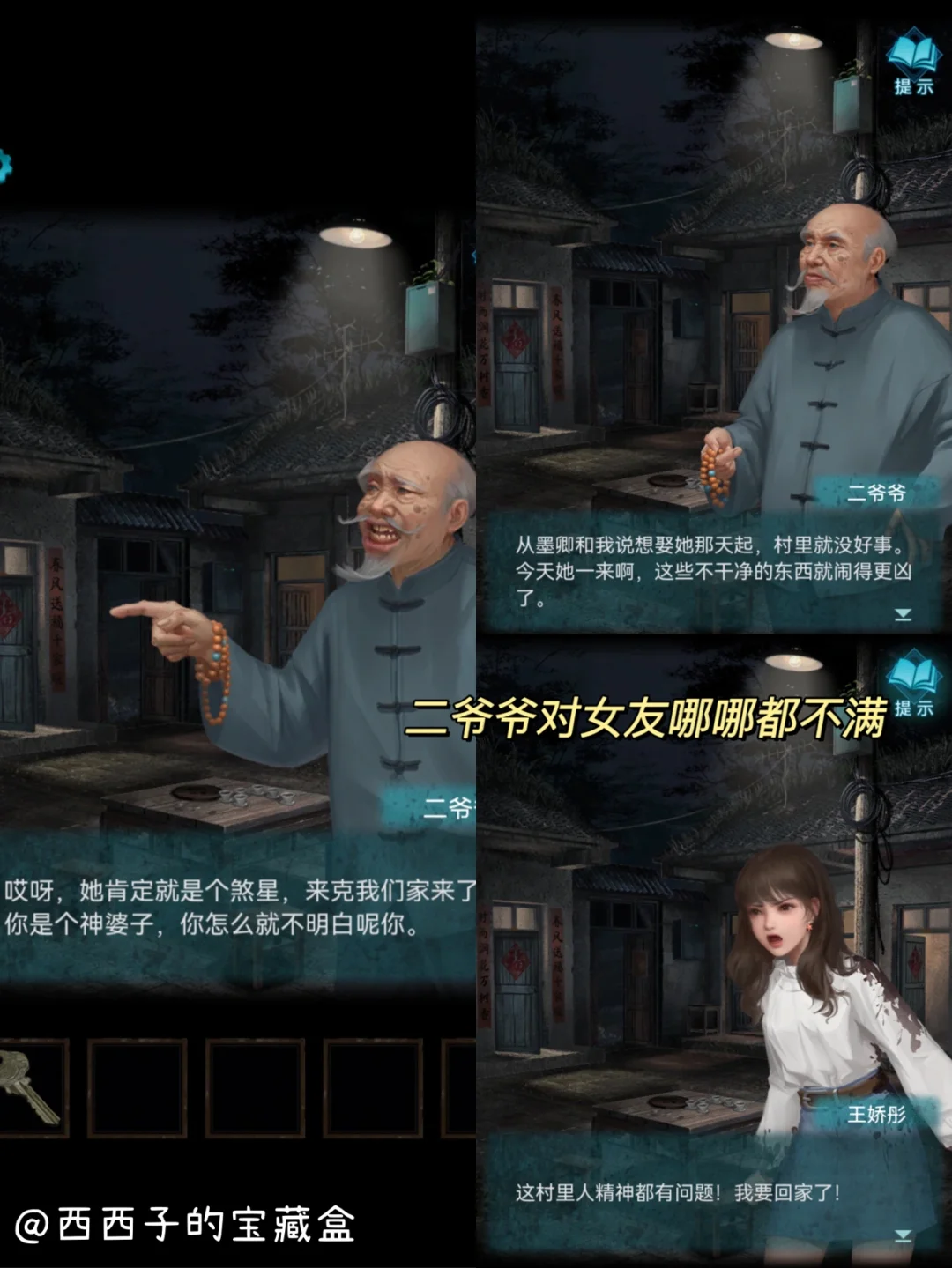 游戏一开始是一对👫情侣在深夜开车,男主申墨卿带着女友彤彤回老家探望二爷爷,起料撞上了花轿!!