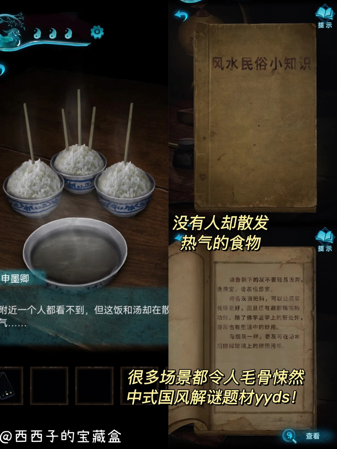 还是熟悉的中式画风熟悉的灵异味道,🌚但画风跟场景又都有升级,🌝喜欢前面几部和这类中式悬疑解谜游戏的真的可以闭眼入,而且第3部的剧情很Nice,💓心跳指数也更高呦,恐怖元素会比之前多且厉害,🎧带上耳机玩你会更有沉浸式的体验,[暗中观察R]直接把这个氛围感拉满!
