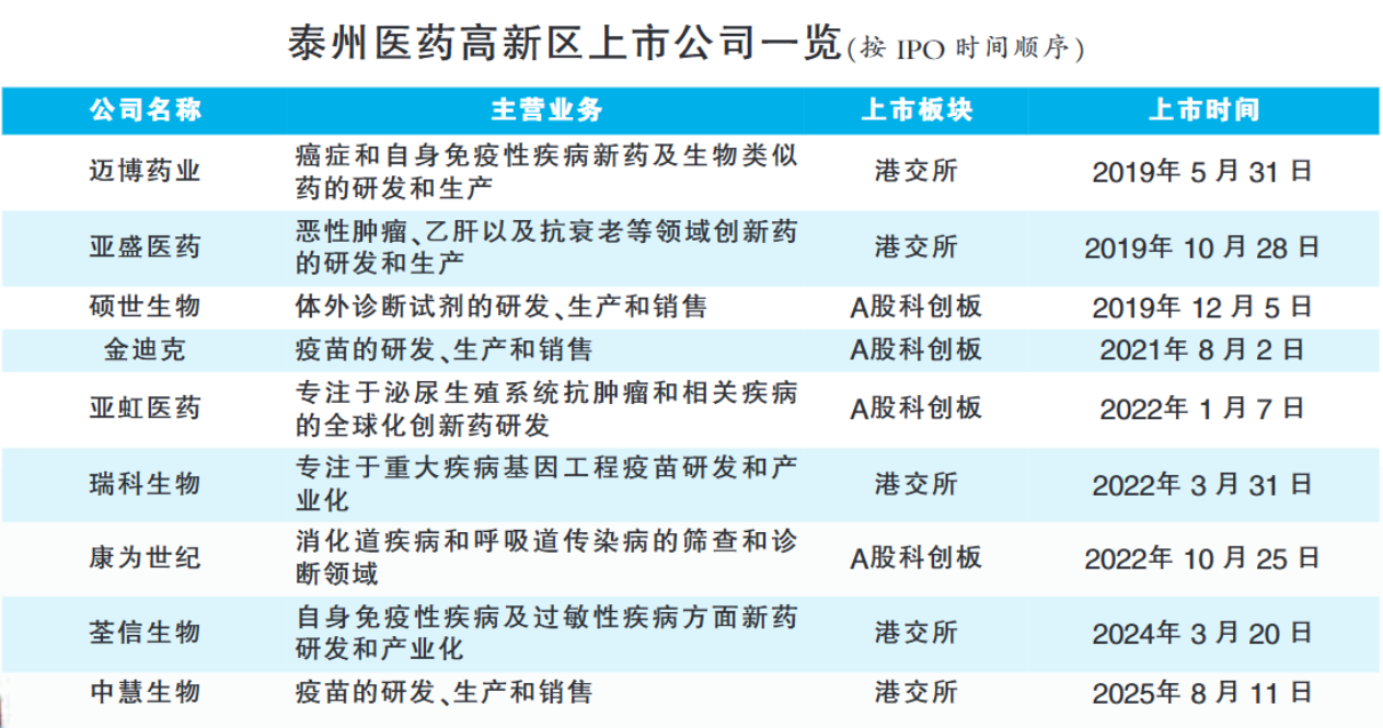 短短四五年间,园区培育出的9家生物医药企业成功登陆资本市场,包括亚虹医药、瑞科生物、金迪克、康为世纪、亚盛医药等,还有1家企业正在冲刺北交所IPO,18家企业进入上市培育期。