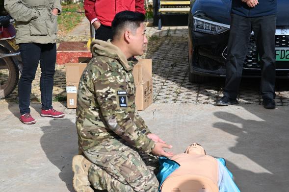 为提升广大村民群众及村公益岗位人员应对突发事故或疾病的救护能力,降低创伤伤害程度,增强安全健康意识,近日,省委办公厅驻发基卡村工作队邀请昆明红十字救援队督察组副组长刘易玮,到发基卡村开展应急救护培训实练活动,通过“理论+实操”的沉浸式教学,帮助村民群众及村公益岗位人员掌握了急救知识与原则,实练了心肺复苏、创伤应对等重要急救技能,体现了“人人学急救、急救为人人”的公益理念,帮助基层不断构筑生命安全互助保障网。