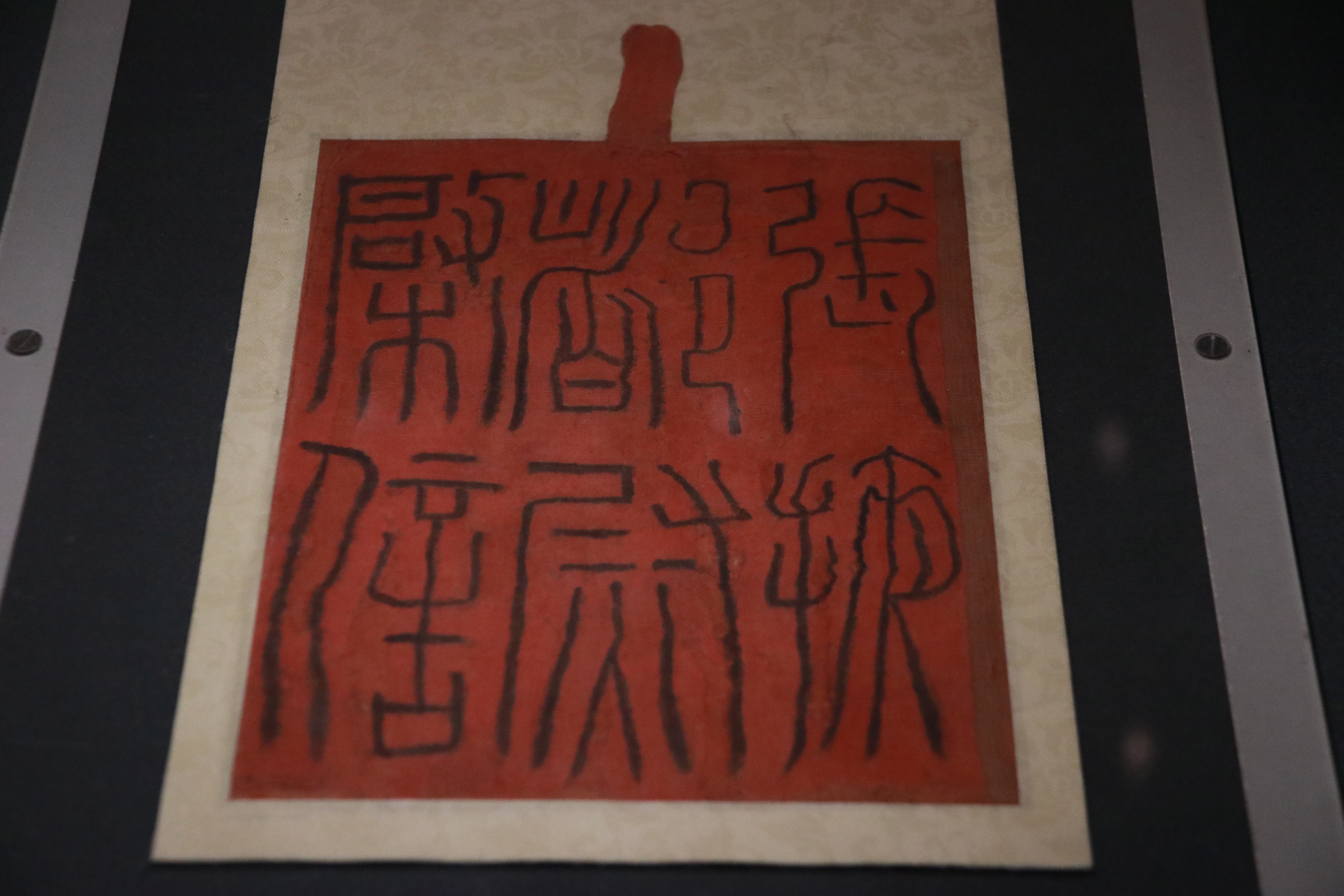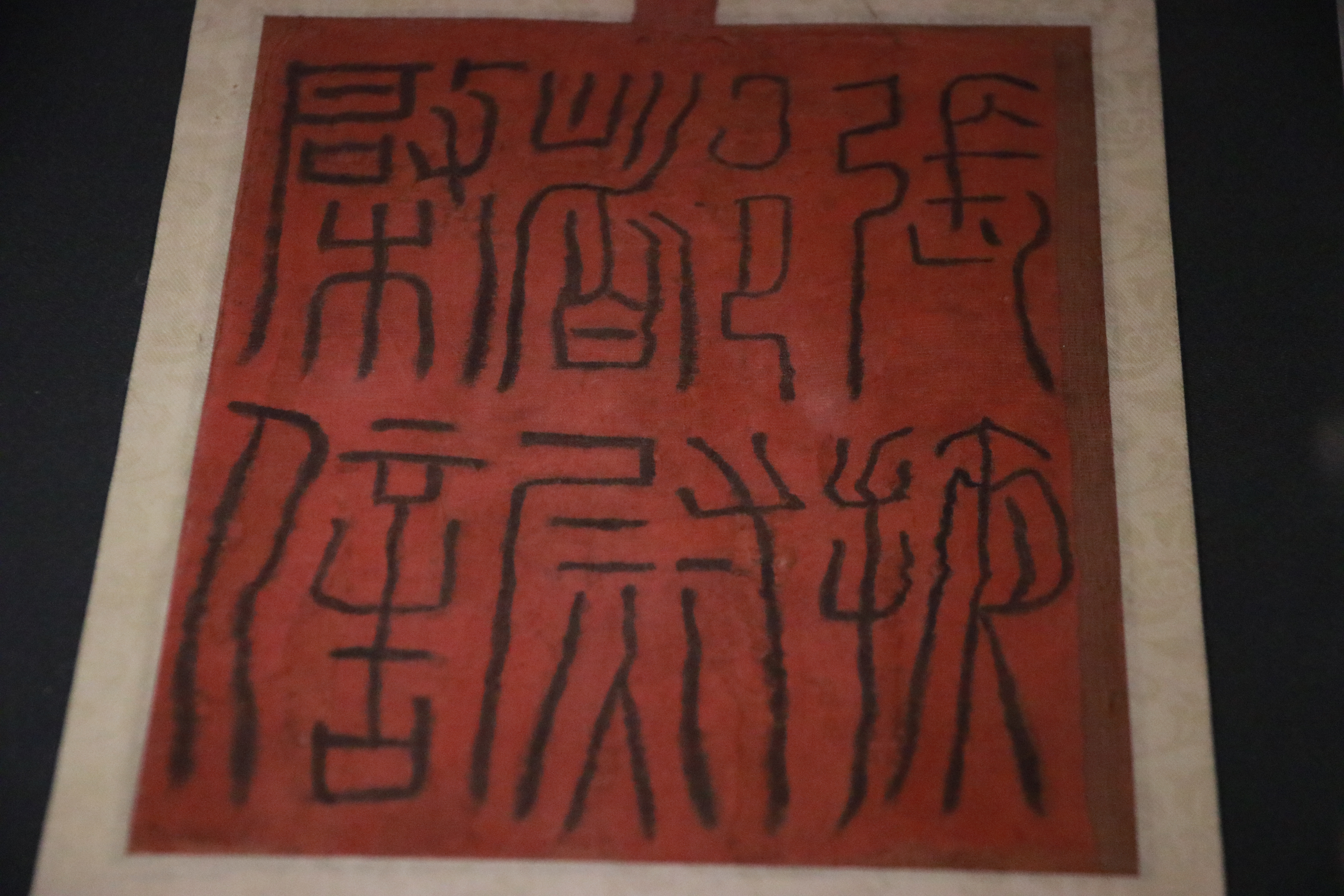张掖都尉棨信 西汉 甘肃简牍博物馆藏1973年出土于甘肃居延肩水金关遗址,绛红色缯帛,高21厘米,宽16厘米,上端缀有素绂(丝质系带),其上有墨书篆体"张掖都尉棨信"六字,单字高约10厘米。"棨信"是汉代官员使用的一种符信凭证。在汉代篆书墨迹出土不多的今天,这件棨信为我们提供了西汉晚期官方手写篆书的珍贵样本,这对研究西汉的符信制度、边疆治理体系以及文书行政运作等具有重要价值。文物我的2025博物馆之旅
