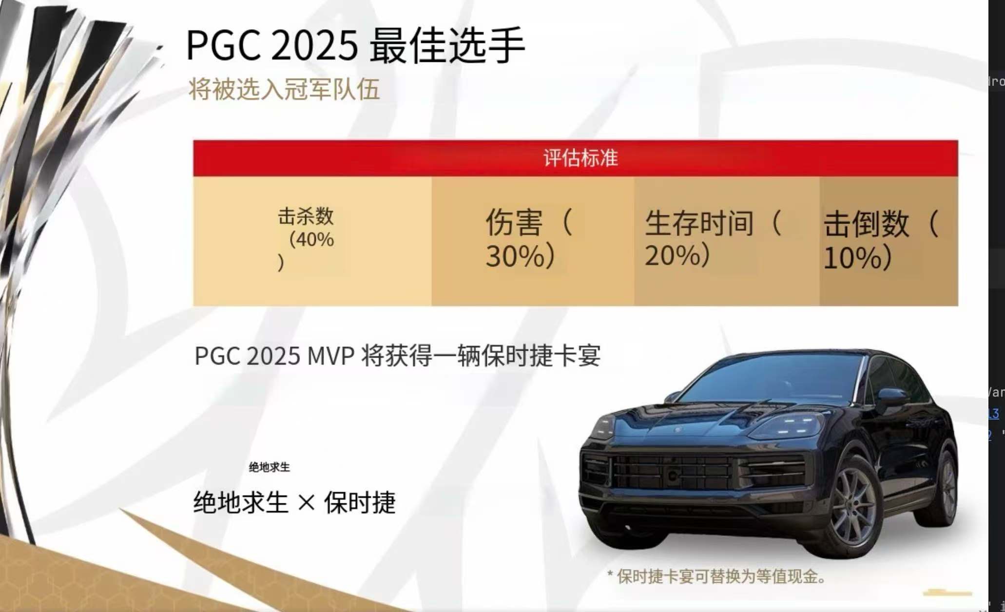 虎扑11月28日讯PGCMVP特别奖励:保时捷卡宴真车!