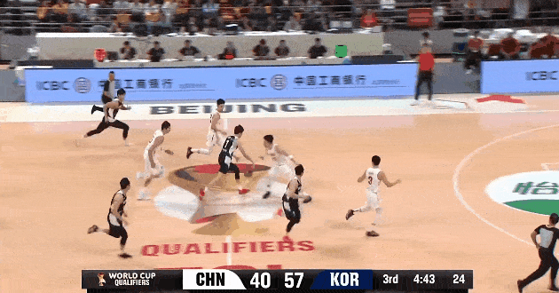 虎扑11月28日讯世界杯男篮预选赛,中国男篮对阵韩国男篮的比赛正在进行中。