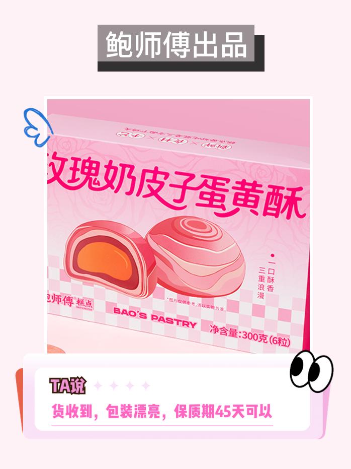 鲍师傅玫瑰奶皮子蛋黄酥来啦!300g/盒共6枚,玫瑰香气与浓郁奶味交融,包裹咸香蛋黄,一口下去超满足,赶紧下单尝尝!这也太好吃了无限回购的宝藏单品 点心美食蛋黄酥