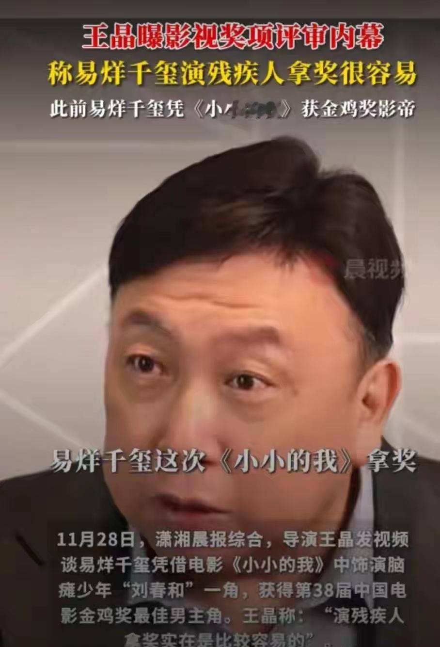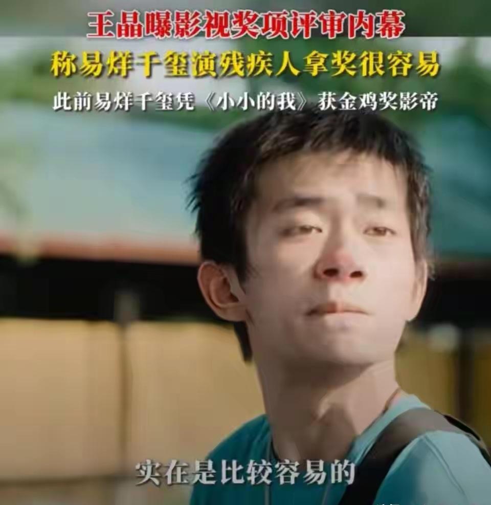 王晶又放“大实话”了!这次他聊到易烊千玺凭《小小的我》拿金鸡影帝,直言:“演残疾人拿奖实在是比较容易的。”[看] 他还爆料影视圈奖项内幕,提到自己父亲当年以为能拿最佳导演,结果奖被人买走,后来随便拍了一部反而补给了他,这操作也是绝了![吃瓜群众] 不过话说回来,四字弟弟这次演的脑瘫少年确实突破很大,从爱豆到实力派演员的转型有目共睹。只是王导这一针见血的大实话,又把奖项那点事儿摆台面上了~ 你们觉得,拿奖到底是靠实力还是靠“技巧”?[思考] 王晶谈易烊千玺拿奖
