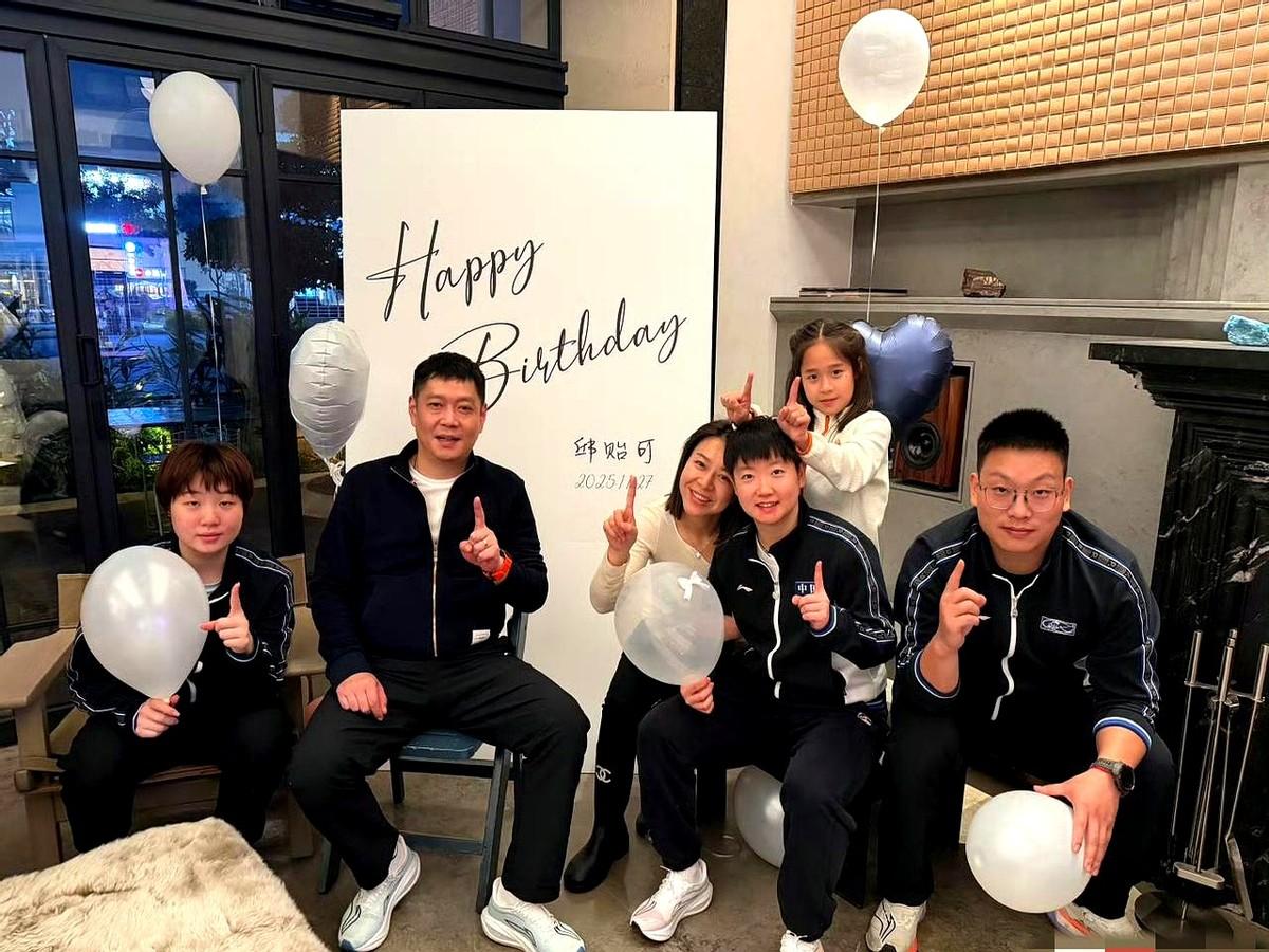 邱贻可这生日过得,主角都快不是他了。 11月27号,邱导在成都过四十岁生日,他老婆孩子,还有孙颖莎、蒯曼都在。一家人吃蛋糕唱生日歌,他自己发文说“一年又一年大家都好”,看着就暖和。 C位绝对是孙颖莎和他五岁的女儿“小豌豆”。小姑娘全程黏着莎莎姐,不是搂脖子就是骑肩膀,笑得可开心了。球迷说这叫“双向奔赴”,我看这词用得真没错,真没错。 这种亲近感是平时处出来的。邱导把孙颖莎、蒯曼当自家闺女,亚锦赛给莎莎煮泡面,训练踩到脚了赶紧摸头安慰。所以生日会这么亲近。 跟着邱导三年,莎莎拿了19个国际单打冠军,2025年更是连着卫冕世界杯和世乒赛女单。这成绩就是对师父最好的生日礼物了。这种师徒关系,挺好。
