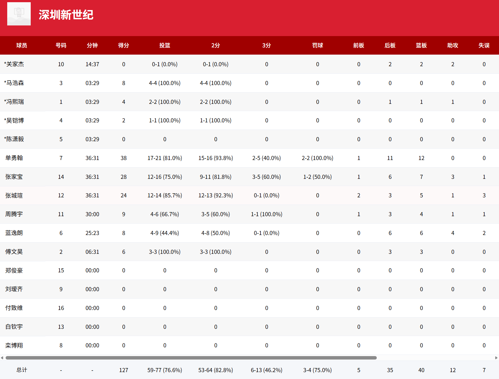 深圳U19男篮:单勇翰38分、张家宝28分、张城瑄24分