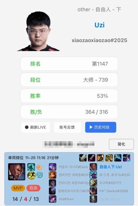 Uzi四天没打韩服了真感觉马服联盟跟他签了啥流量协议,每年转会期都给他弄出来造点