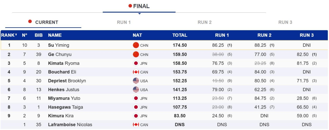 据国际雪联官方介绍,苏翊鸣在比赛中完成的“背靠背1980”动作,即同一次滑行中连续两次完成1980度转体(单次五周半旋转),总旋转度数达3960度。赛前一个月,苏翊鸣完成了全世界首个“背靠背1980”。