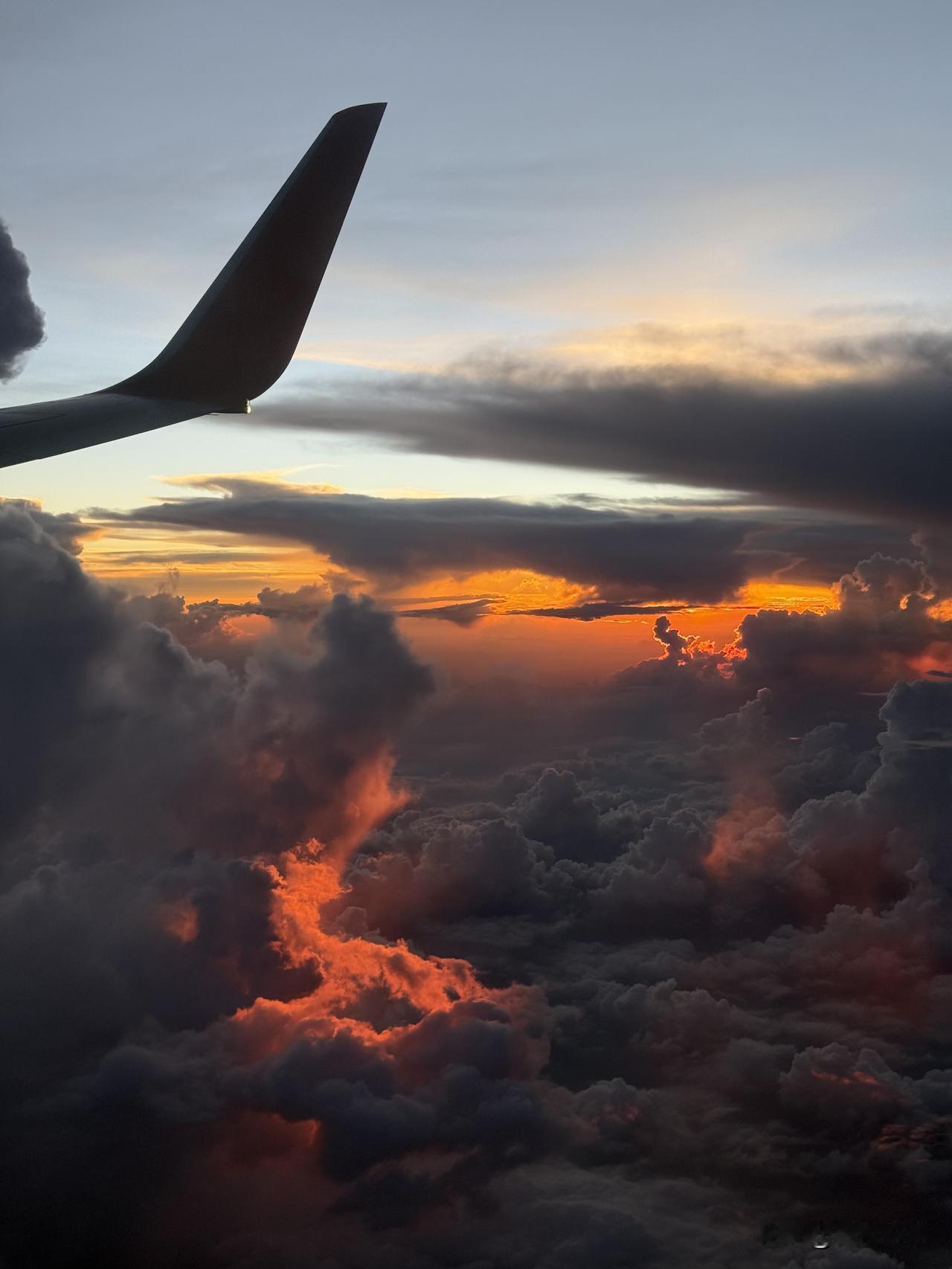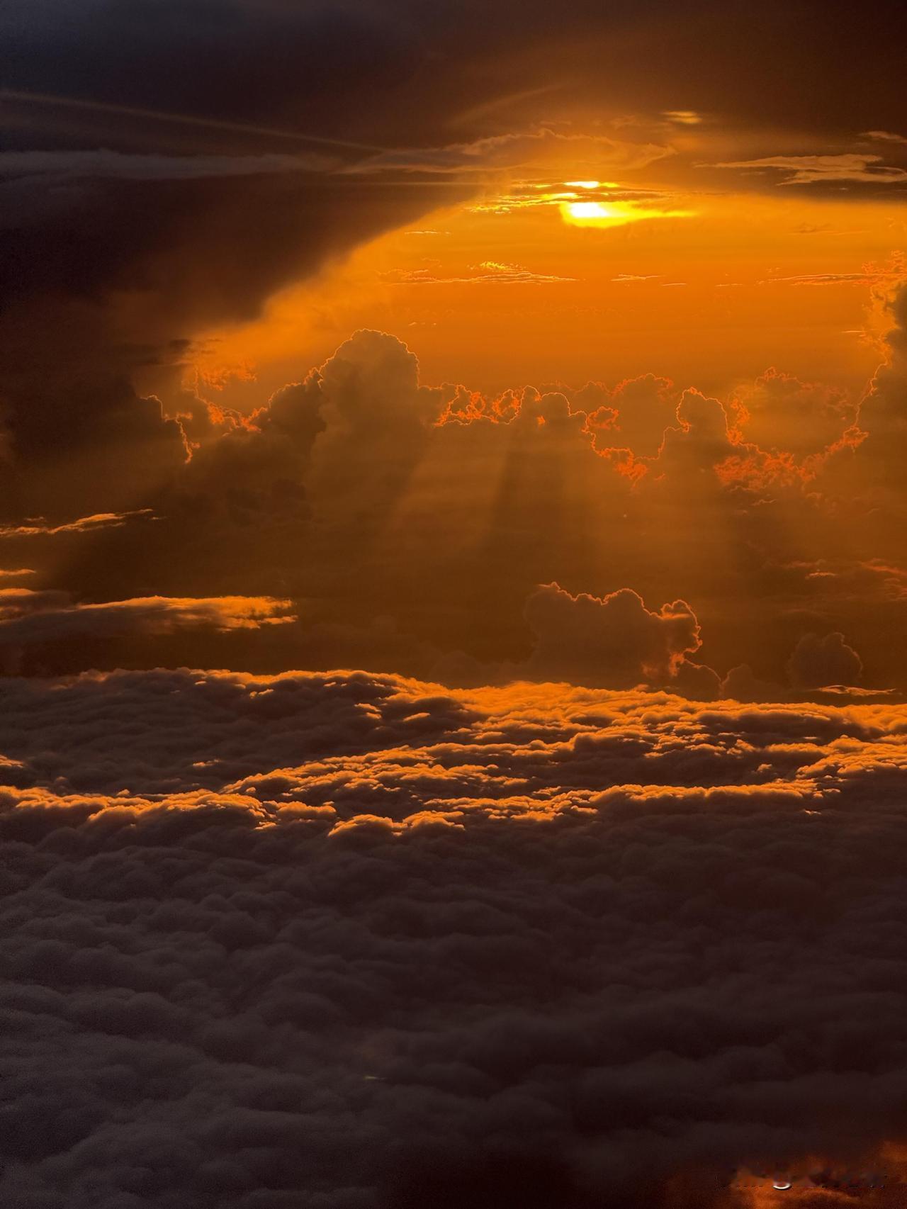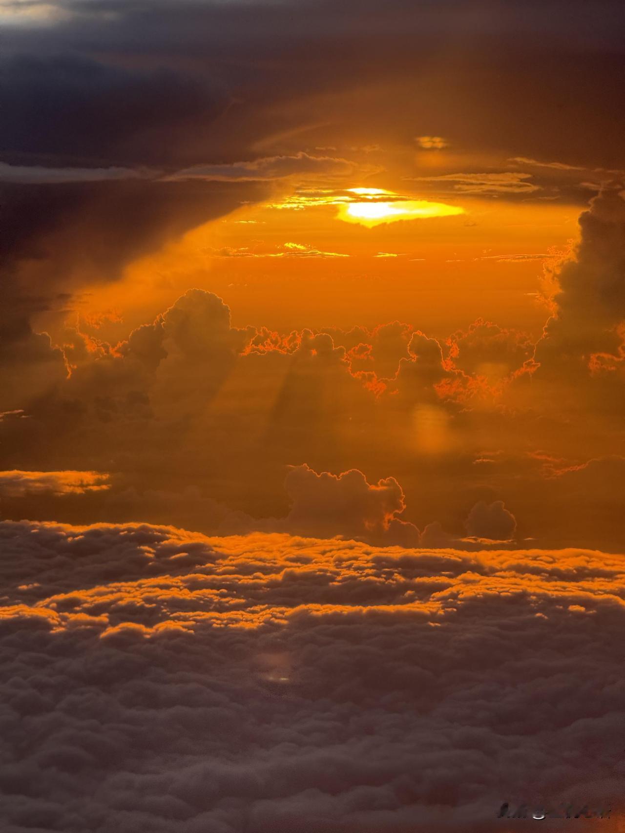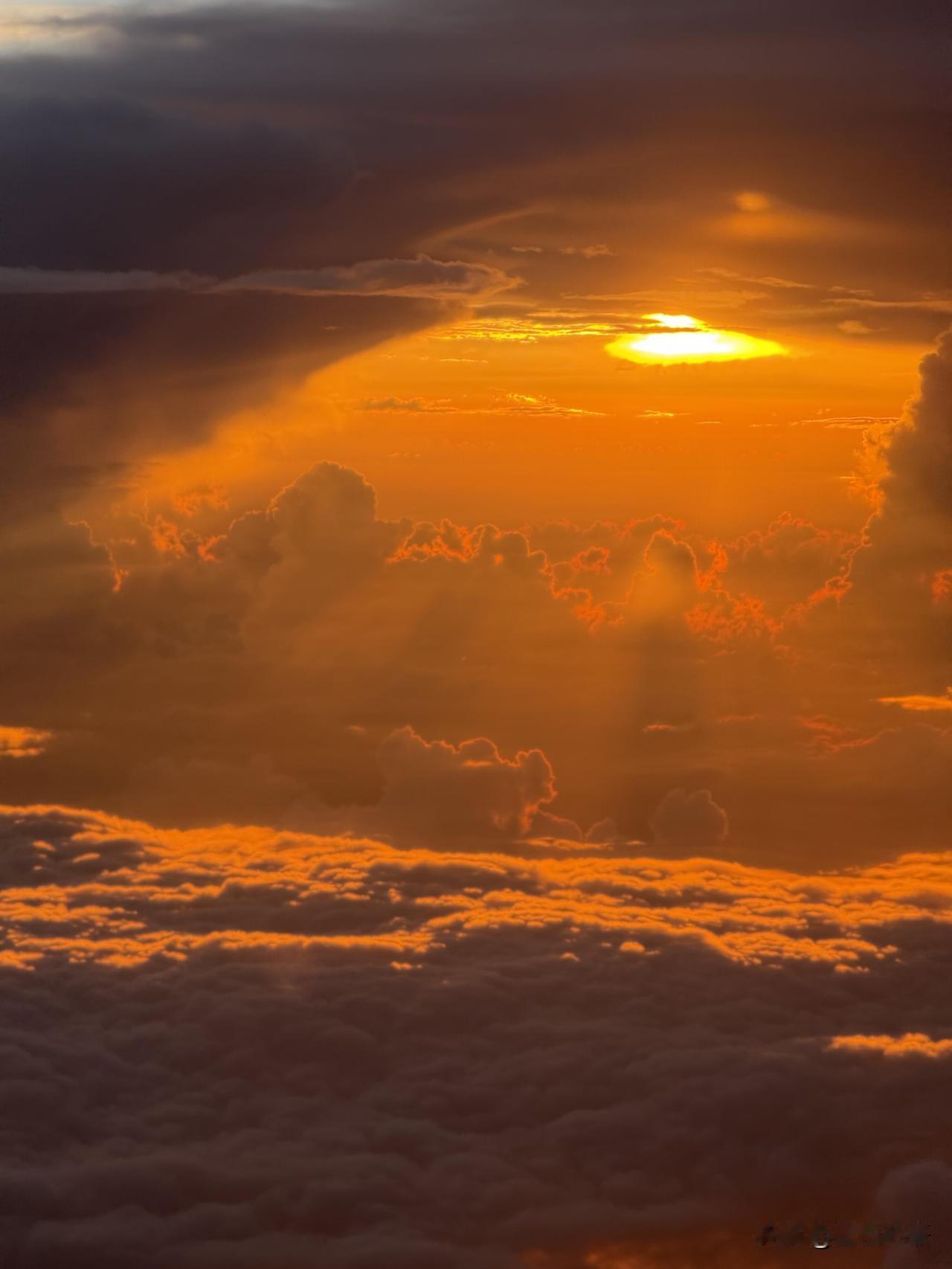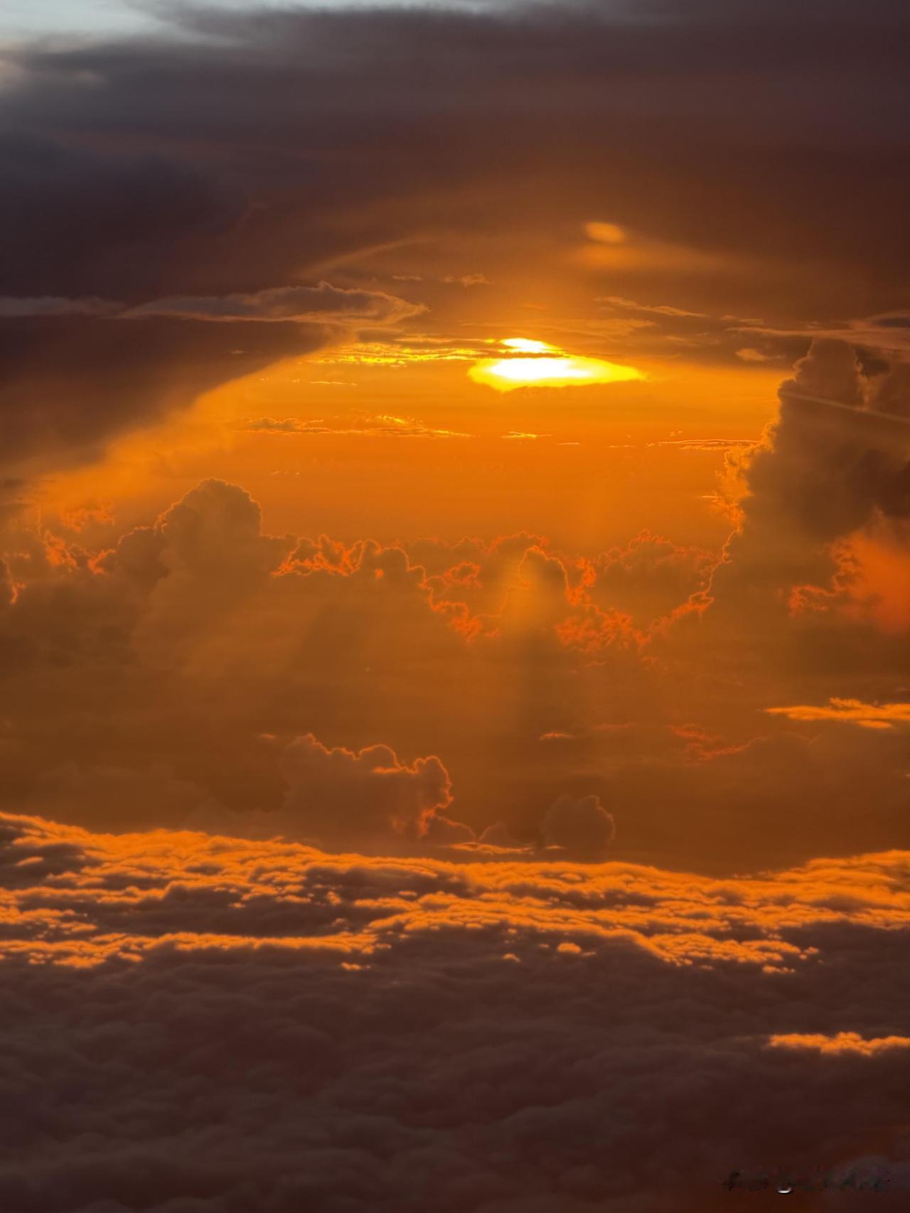 好幸运,飞机上撞见天宫开大会了✨ 从上海飞珠海,飞机延误本来超烦躁 结果抬头一看,直接被美到失语😭 云层堆得层层叠叠, 霞光把天空染成金红一片, 云朵像神仙们的座驾, 飘在天上超震撼! 阳光透过云层洒下来, 光斑闪闪烁烁, 像天宫在发光, 肉眼看比照片绝一百倍! 原来飞机延误不是遗憾, 是上天给的惊喜呀~ 这场高空日落, 直接治愈了所有不开心🌇 飞机起上的美景