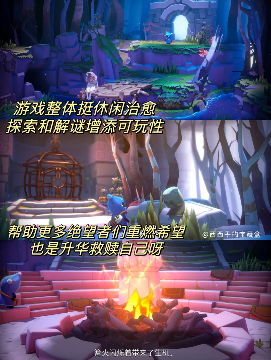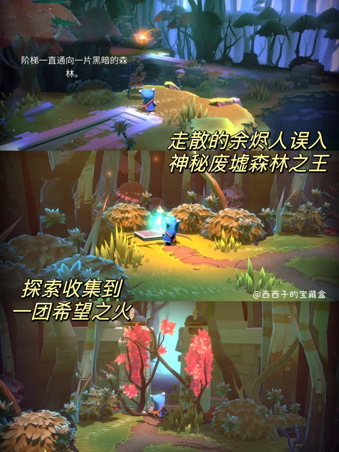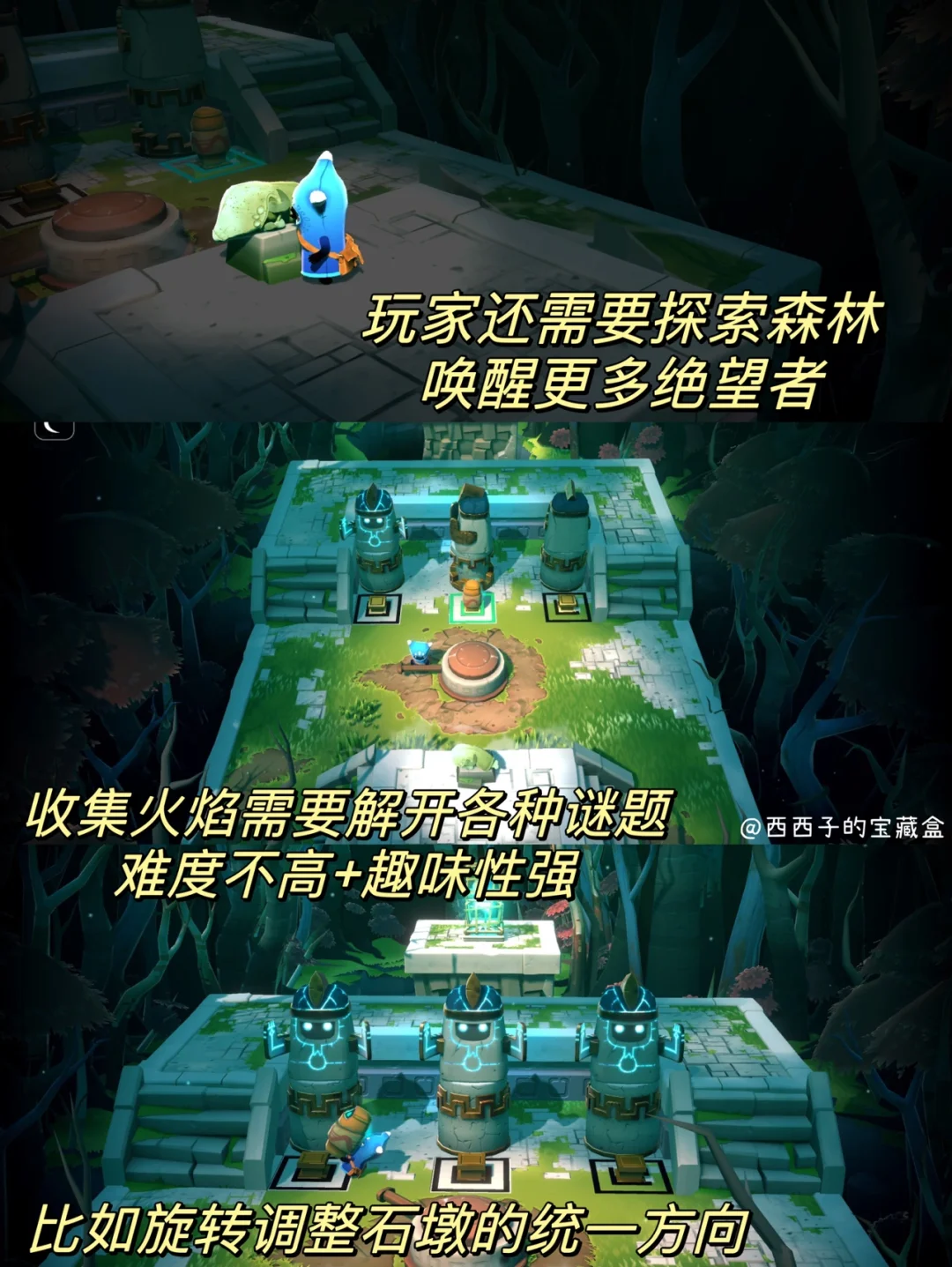玩家将在游戏中扮演走散的旅行者余烬人,[集美R]神秘废墟的森林之王寻找失去希望的绝望者们,🎮然后通过解开各种难度刚刚好的趣味谜题,🔥收集希望火焰,唤醒这些绝望者,直到最后的篝火,完成旅程。